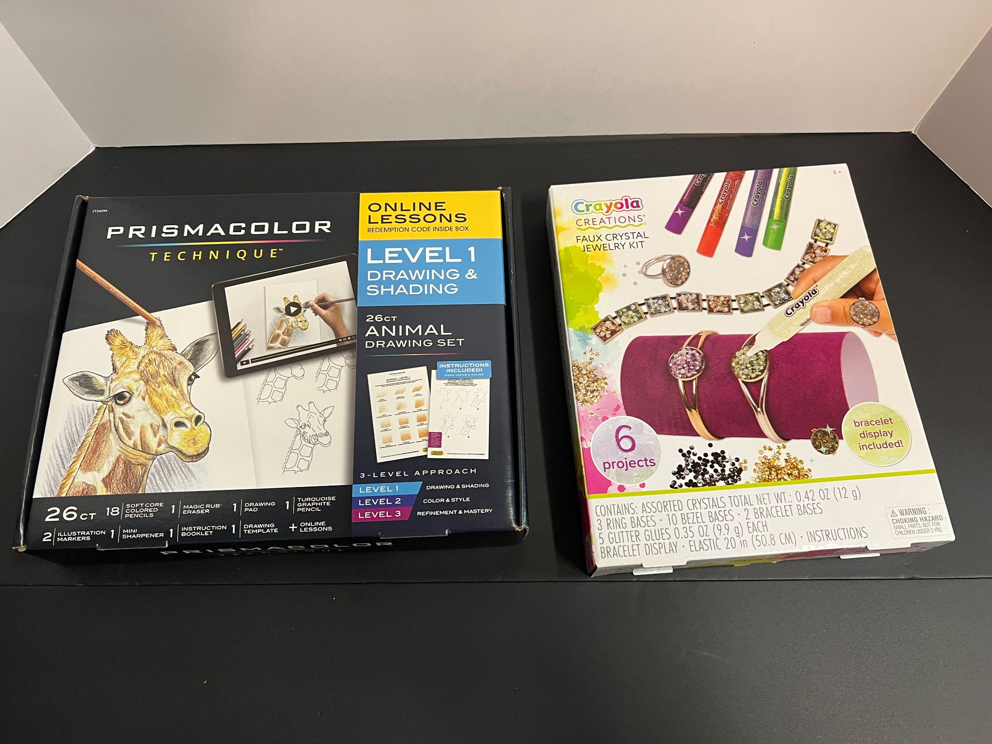Crayola Creations faux crystal jewelry kit, also includes online lessons, Prismacolor Technique, level one drawing and shading, see pictures or details.