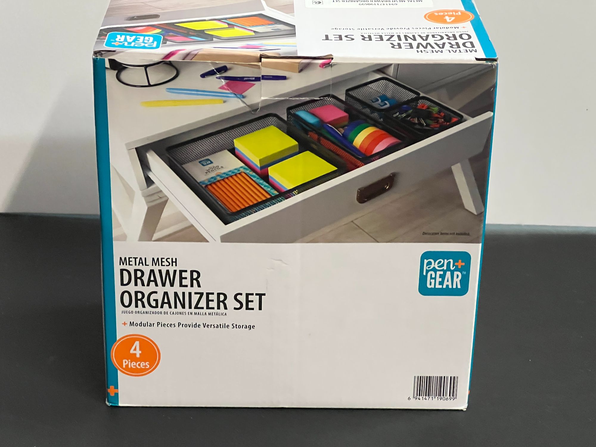 Metal mesh drawer organizer set, comes in original box, see pictures for details.