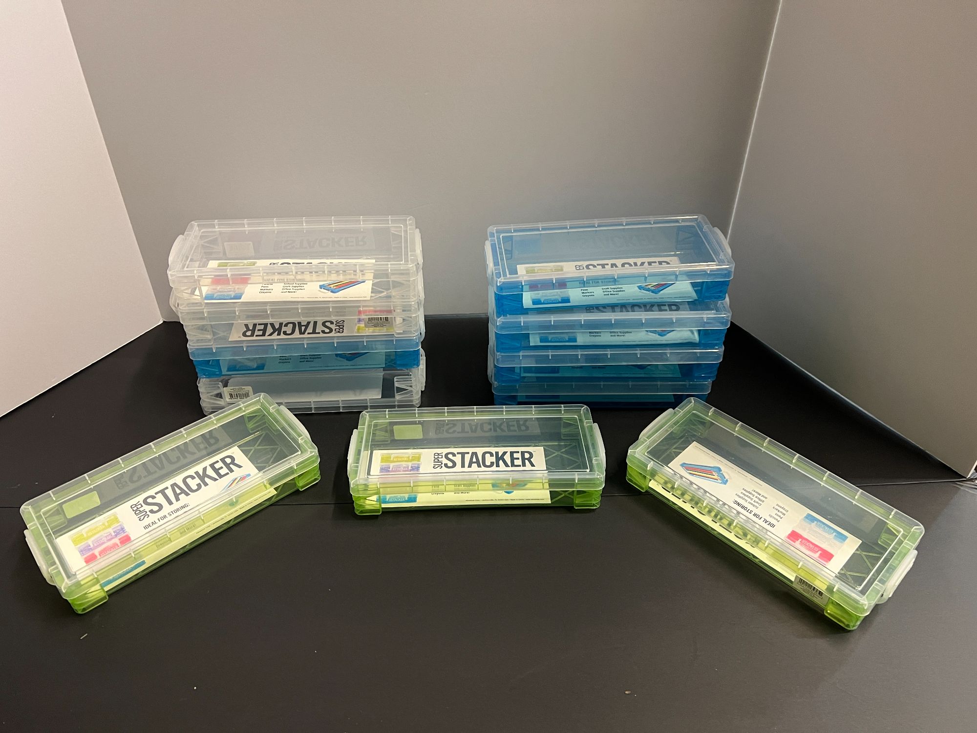Stacking storage boxes, approximately 11 pieces, see pictures for details.