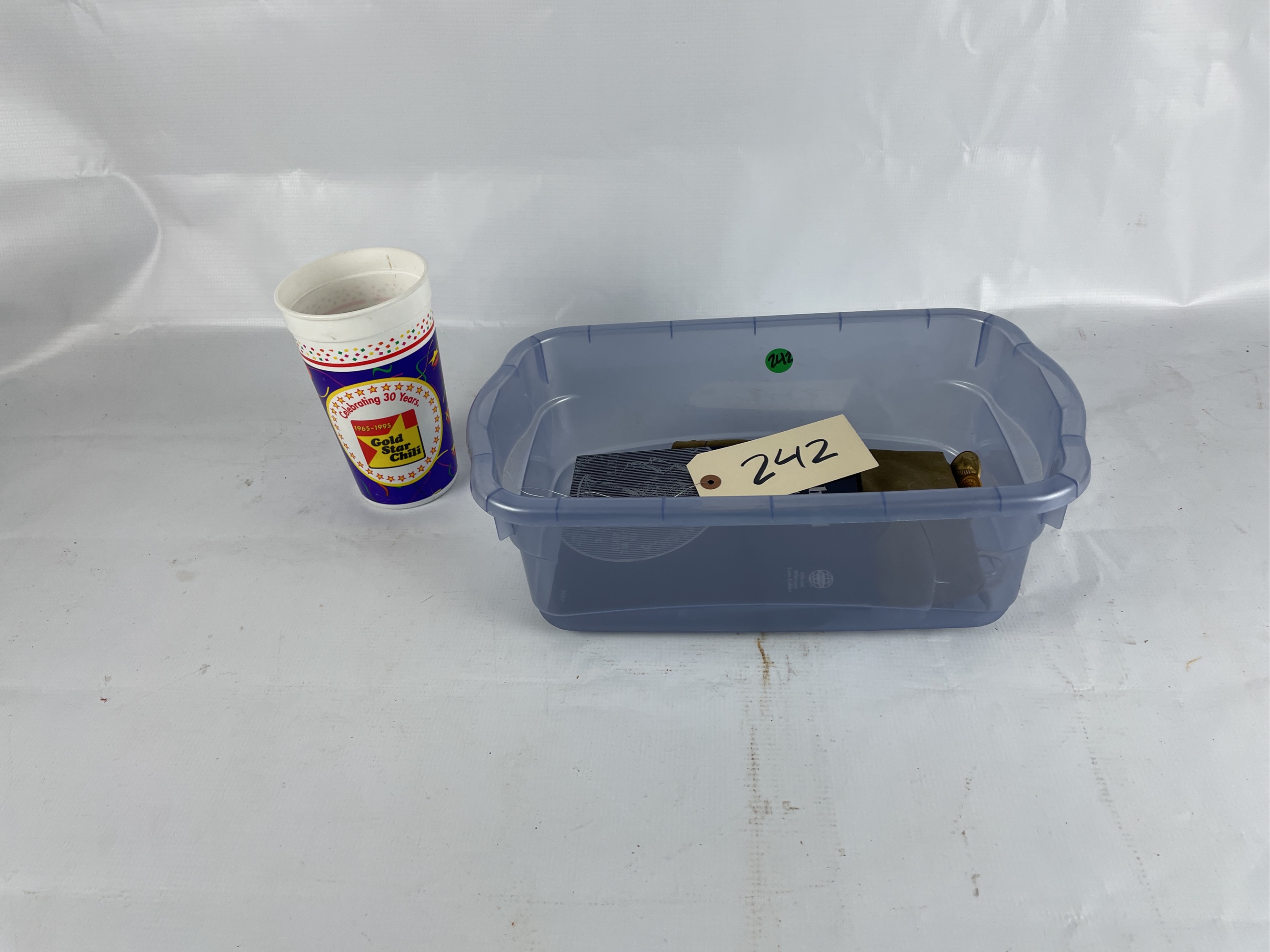 A mixed collection including a cup approximately half full of pre-1964 nickels, two statehood quarter sets, a money bag, bottle openers, world's fair coins and other miscellaneous items as seen in the photos.