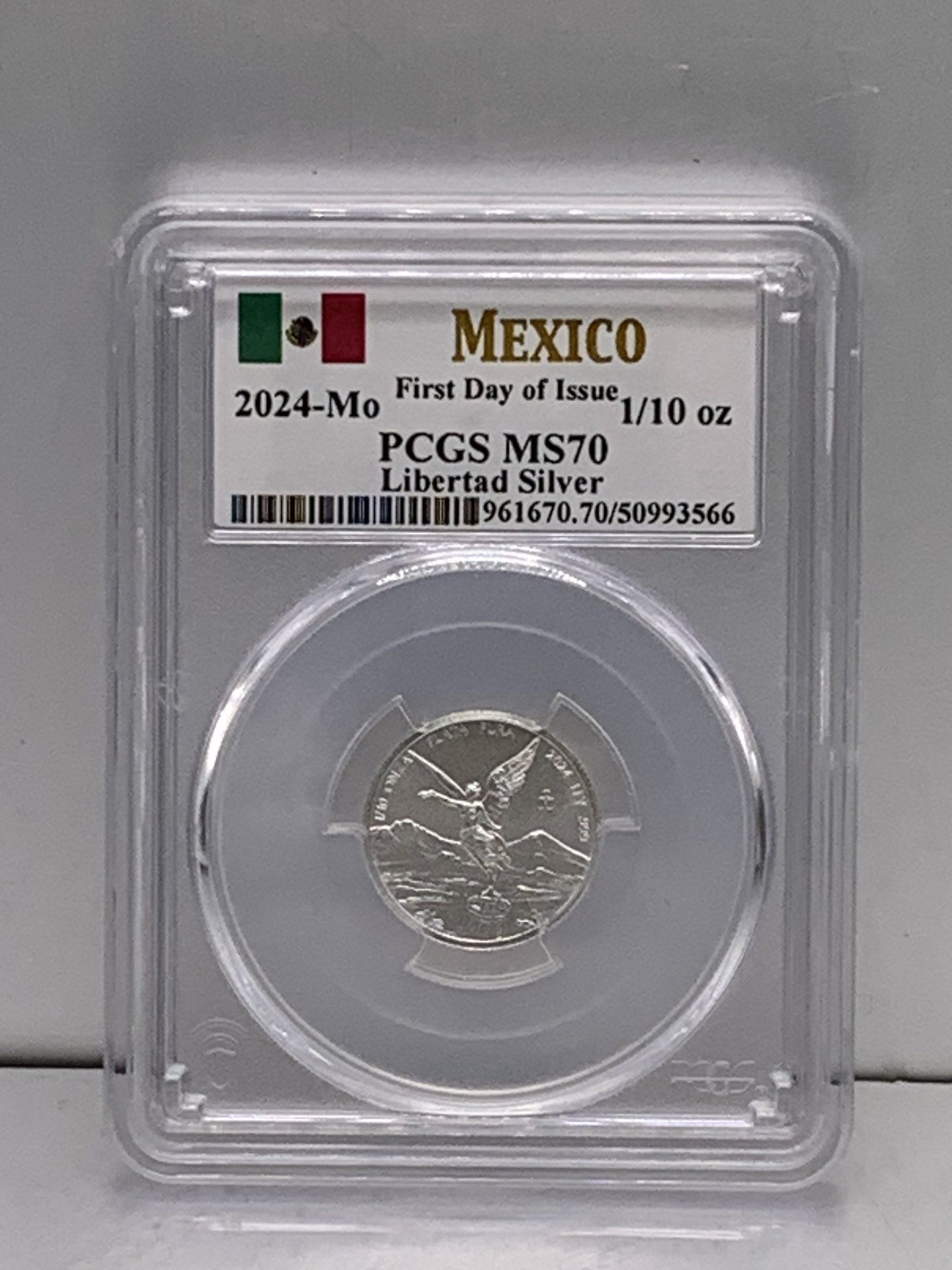 2024-MO 1/10 OZ LIBERTAD SILVER MEXICO FIRST DAY OF ISSUE PCGS MS70 GRADED COIN IN CASE