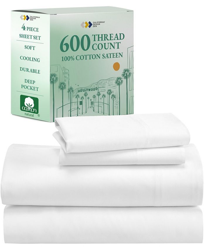 Experience the luxury of hotel sheets every night with our 600 Thread Count 100% pure cotton sheets. The lustrous, closely woven ultra-soft sateen weave and breathable nature of our fabric keeps you cool and comfortable throughout the night making them ideal for hot sleepers. Luxury 600-thread count - 100% cotton sateen - soft and crisp. 4-piece Queen cotton sheets set with 1 top sheet (90" W x 102" L) and 1 fitted sheet - fully elasticized (60" W x 80" L + 16" Deep Pocket) and 2 standard / queen size pillowcases (21" W x 32" L).. Smart bed-making placement and size-indicator labels. Easy care - Machine wash and dry at regular setting. No pilling, fading, or shrinking. OEKOTEX STANDARD 100 certified for no harmful substances. Committed to sustainability with no plastic packaging. Made in family-owned and operated factory in India. Experience luxury at a great value!. Cotton. Machine washable. Imported.