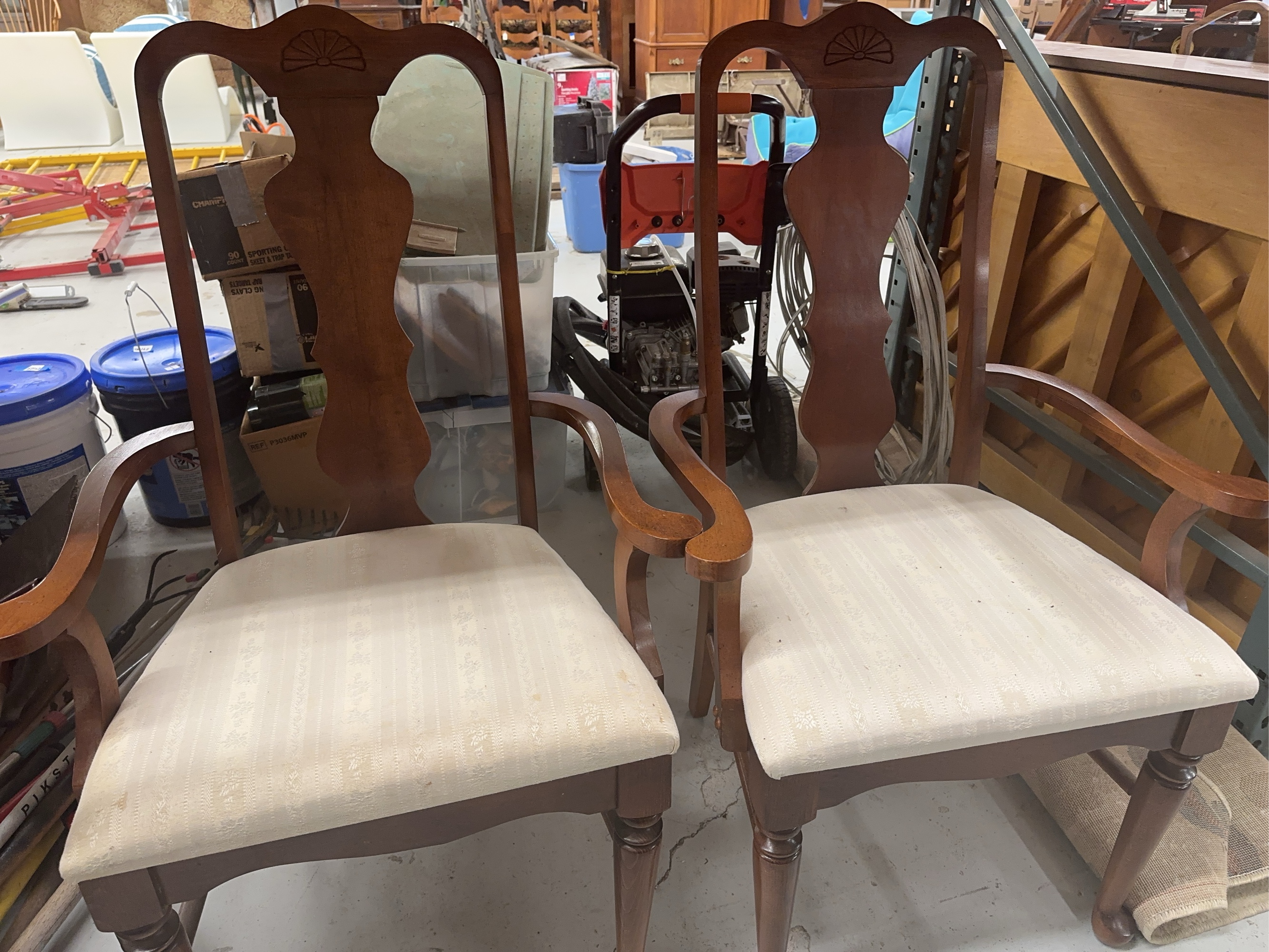 Pair of Wooden Armchairs with Upholstered Seats