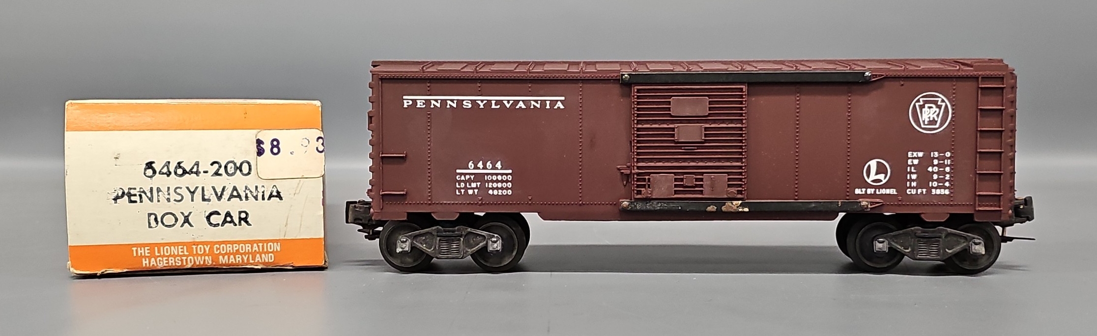 Mint Unrun Lionel Postwar O 6464-200 Pennsylvania Box Car in an excellent Hagerstown Checkerboard Box.