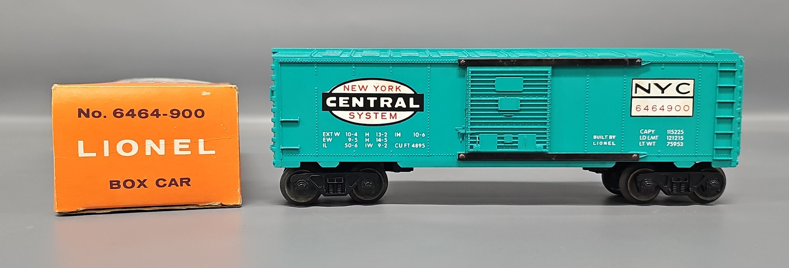 Unrun Lionel Postwar O type IV Jade Green 6464-900 New York Central Box Car in Original Box, C9-10 in a good original box that is missing