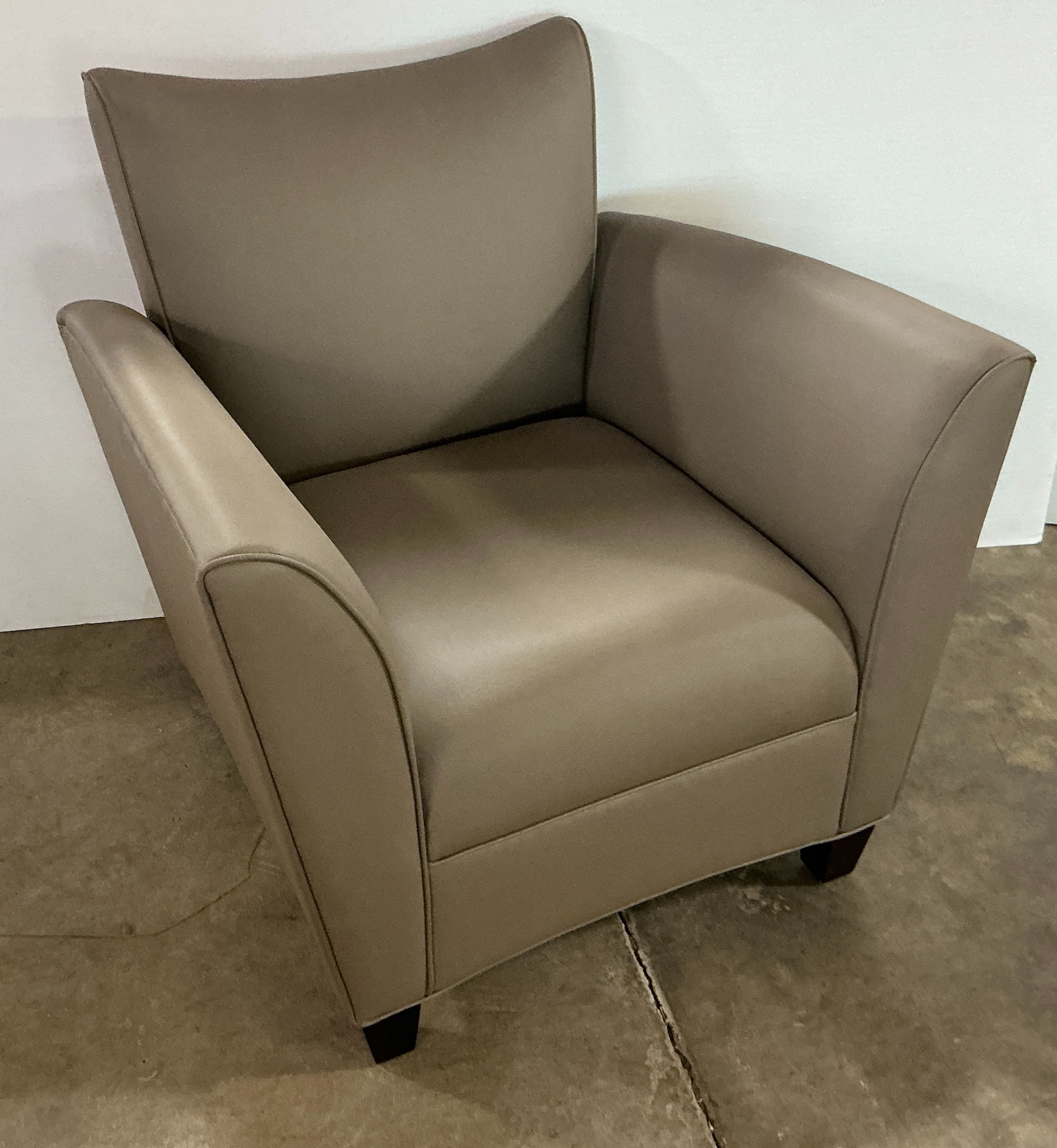Comfortable and stylish armchair with neutral toned upholstery. 34 in. tall
