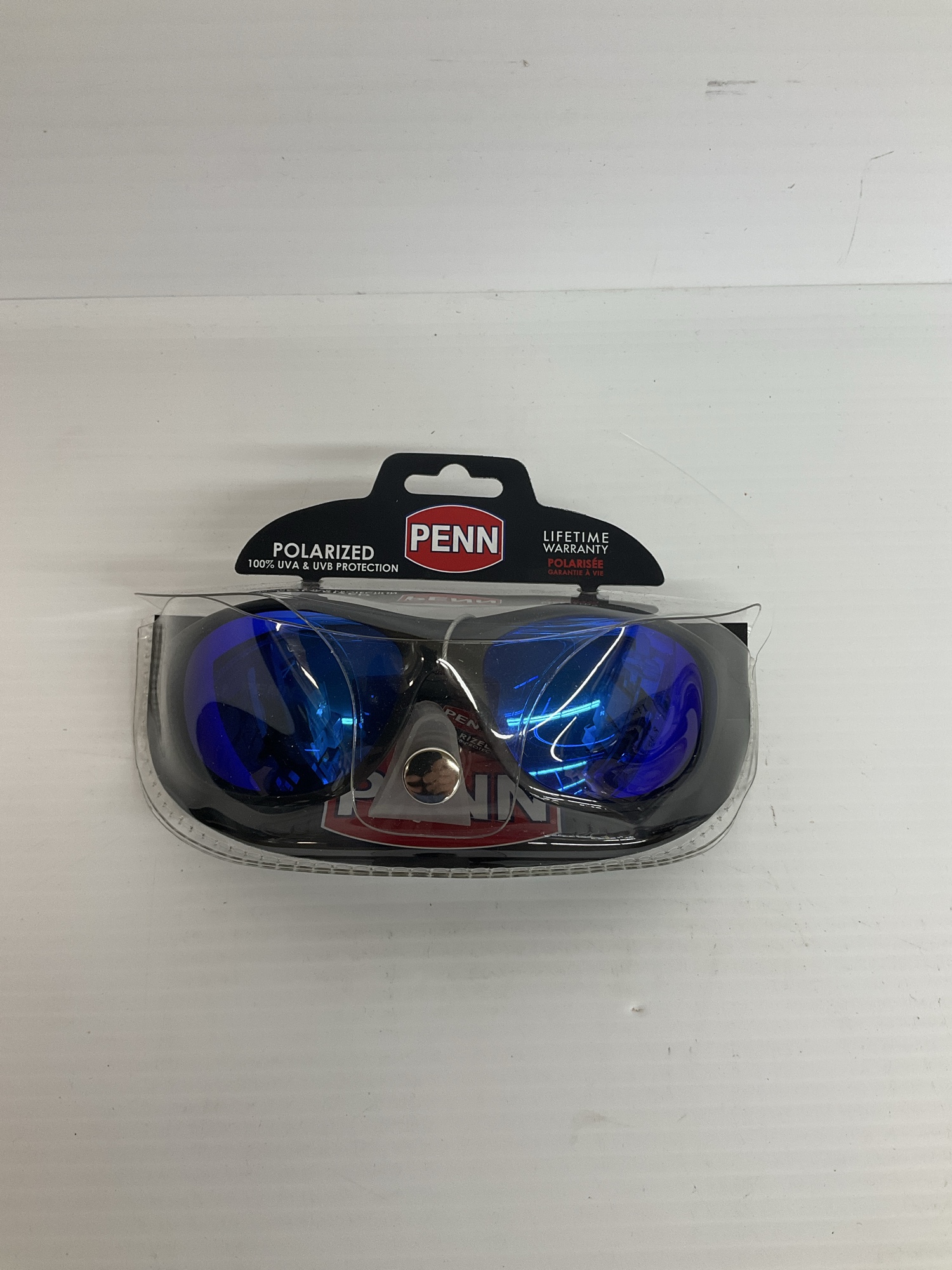 New in package Penn Polarized Fishing Sunglasses. These sunglasses offer 100% UVA & UVB protection. Blue Lens.