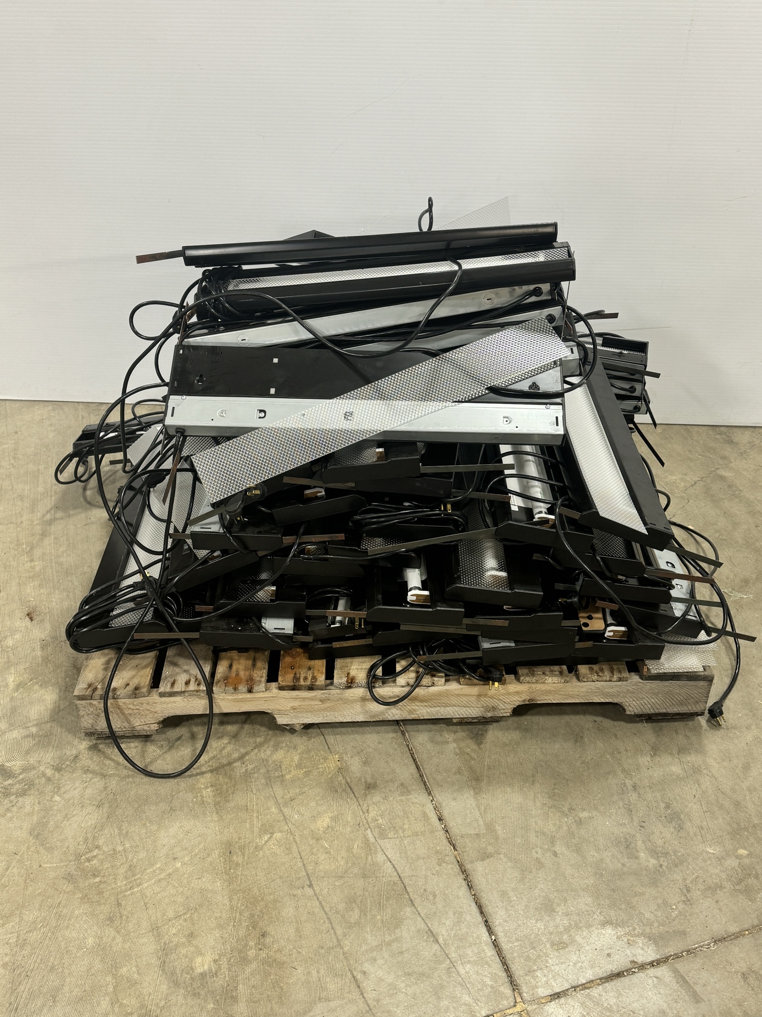 Large lot of fluorescent lighting fixtures. Ideal for commercial, retail or residential applications. Contains a variety of housings with tubes included.