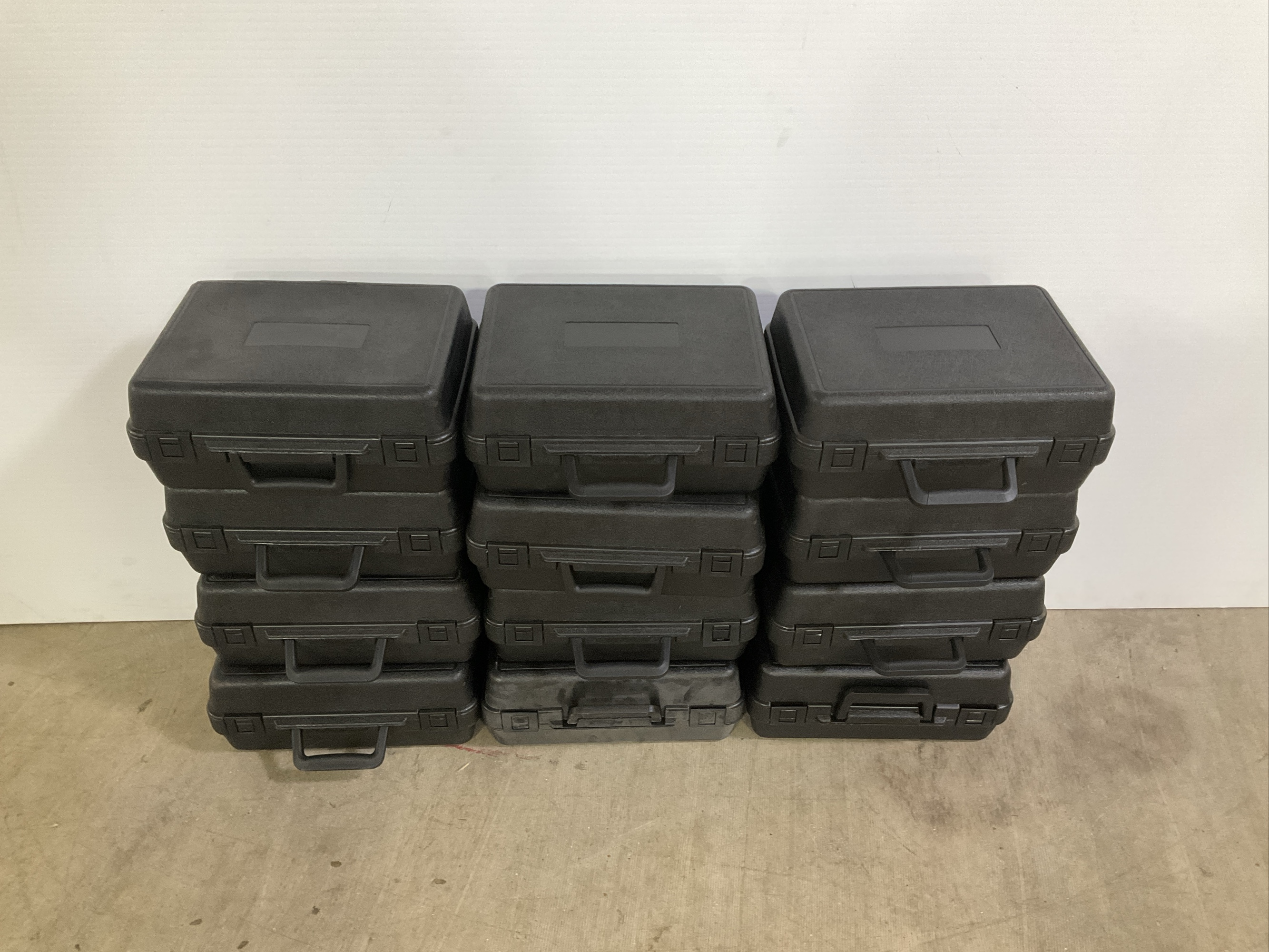This auction is for a lot of black plastic cases. These cases are empty and would be great for storage or transportation. They are all the same size and style. 9 x 12 x 5 in.