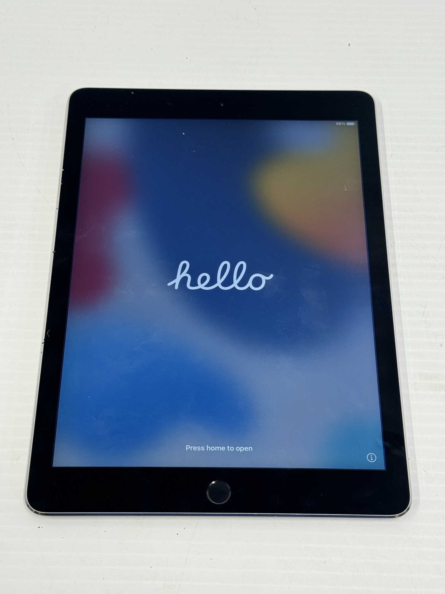 Apple iPad. Designed by Apple in California, Assembled in China. Model A1566. FCC ID: BCGA1566 IC: 579C-A1566 Serial: DMPP3MP8G5VJ.