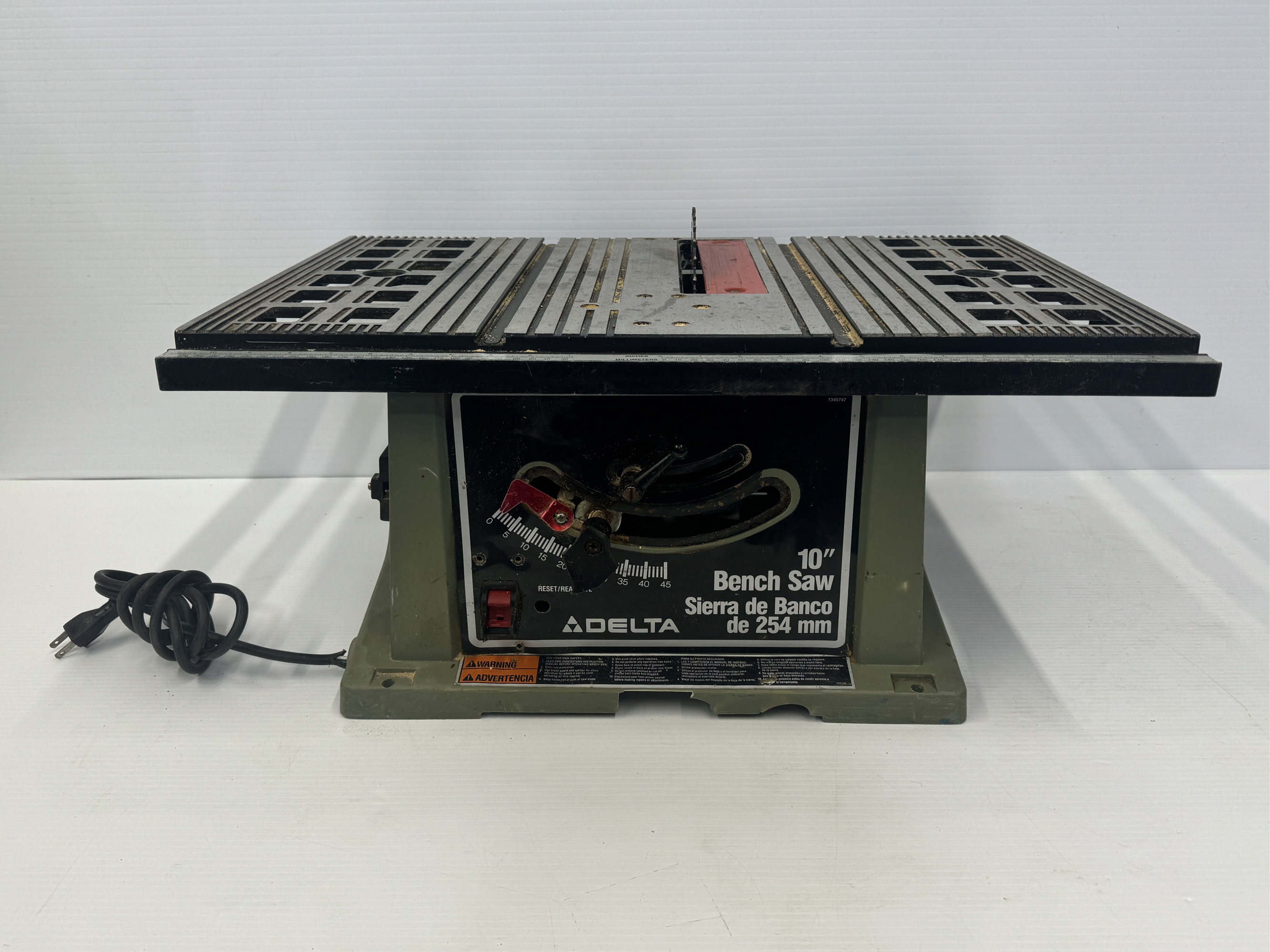 Delta 10 in. Bench Saw with the Model number 36-540. A great tool for various woodworking projects.