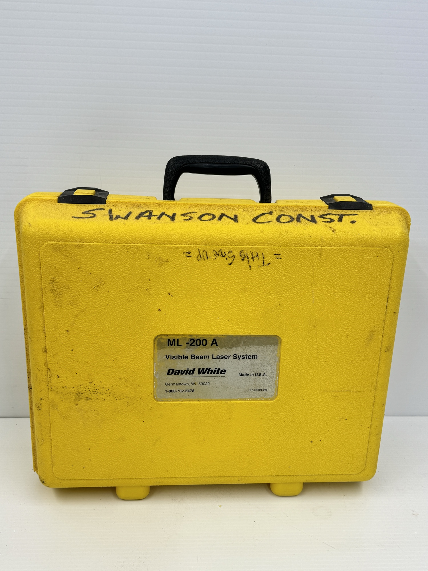 David White ML-200 A Visible Beam Laser System with Uni-Track and accessories in a carrying case. Includes instruction manual.