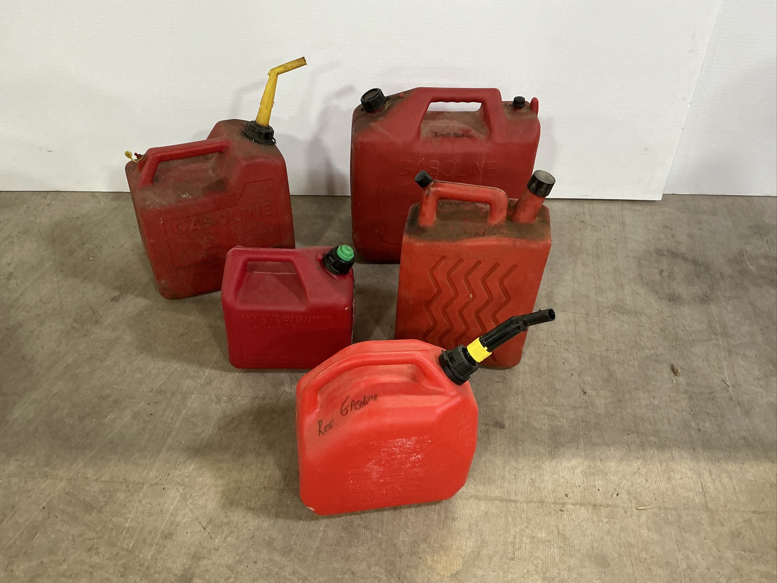 Group of 5 Plastic Gasoline and Diesel Fuel Cans