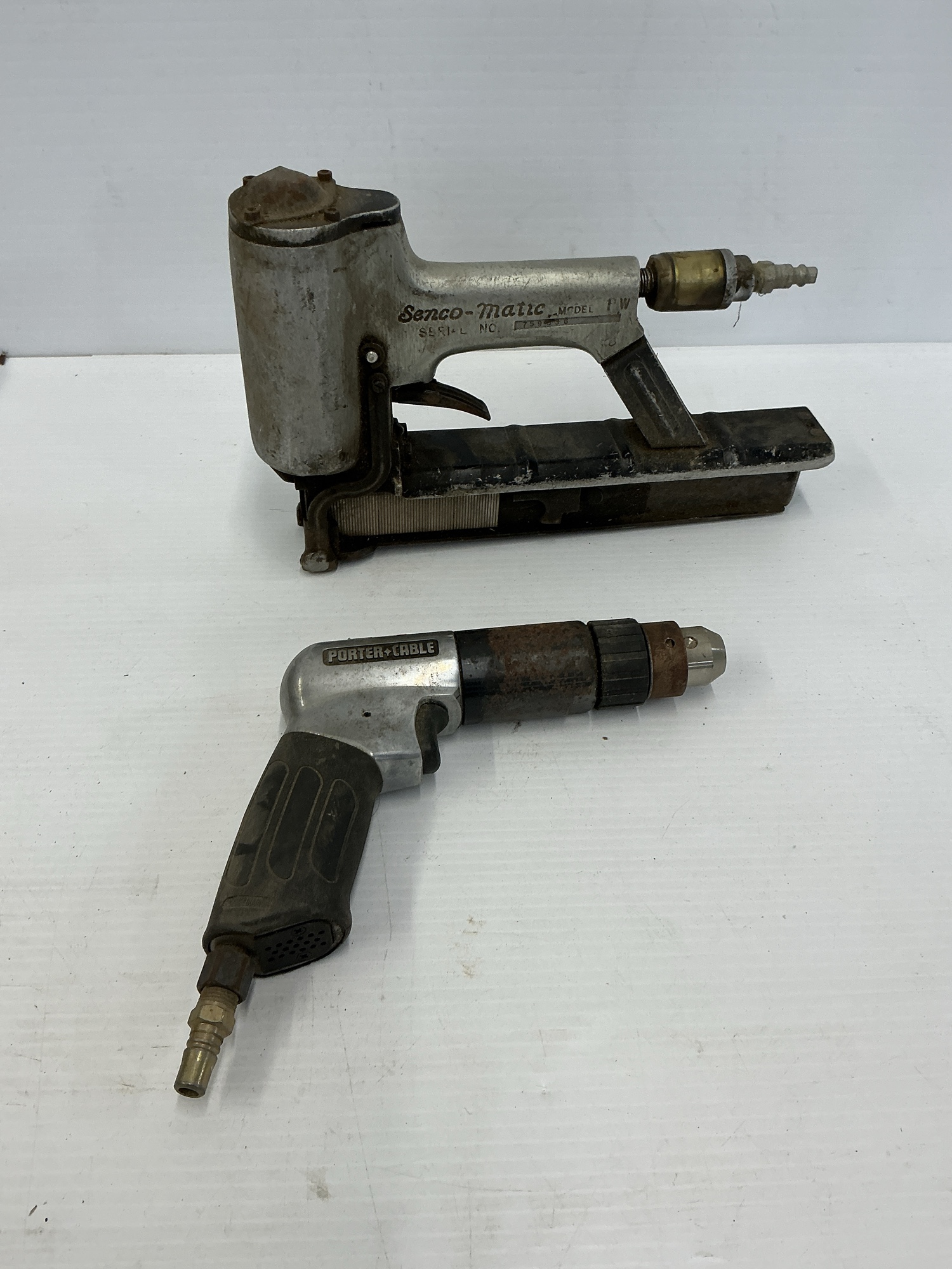 Includes a Senco-Matic Model PW stapler and a Porter Cable drill. Both are pneumatic tools.