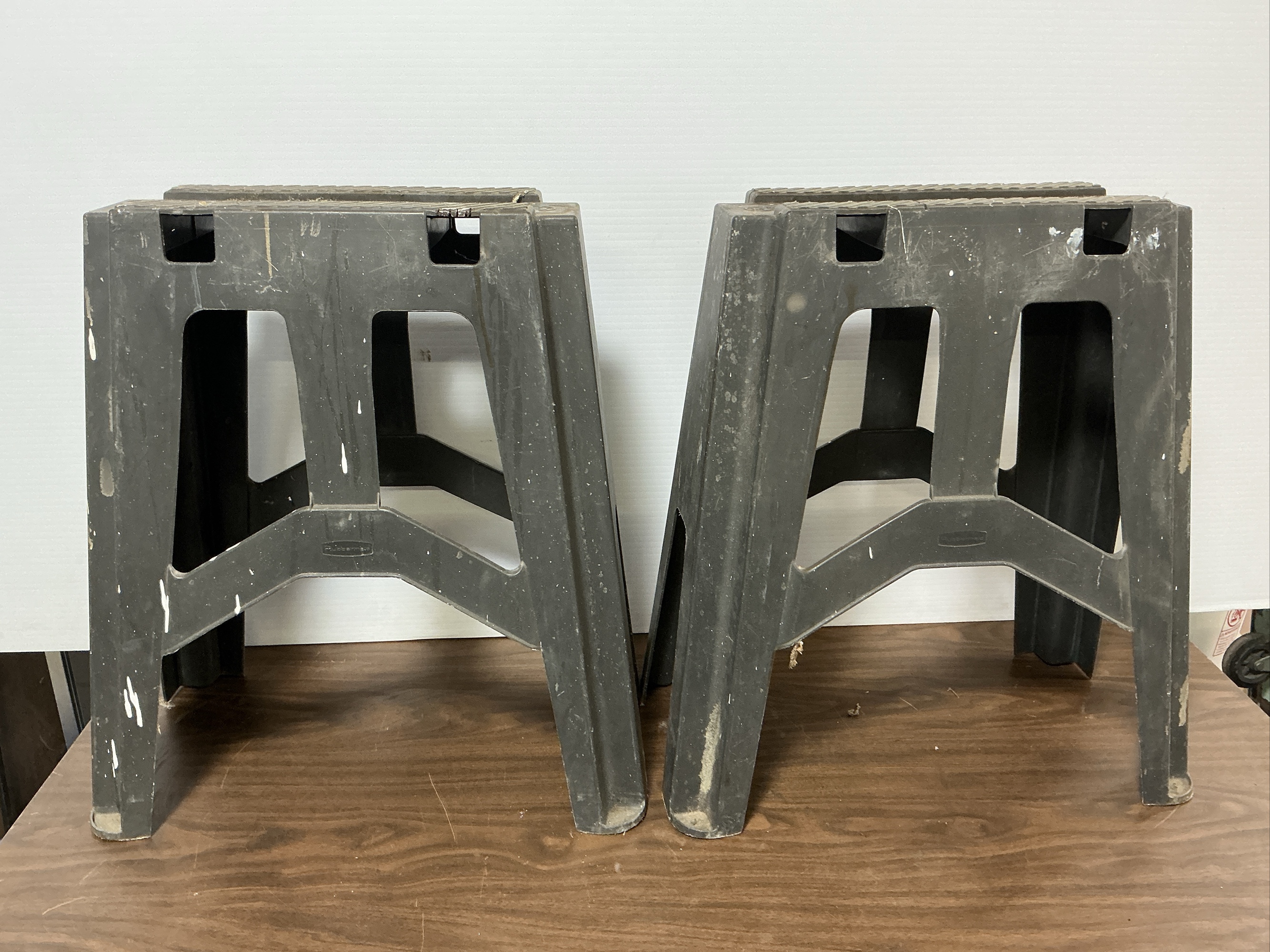 Two Rubbermaid sawhorses. These are great for supporting materials during cutting and other projects. They feature a durable plastic construction. 26 x 19 x 7 in.
