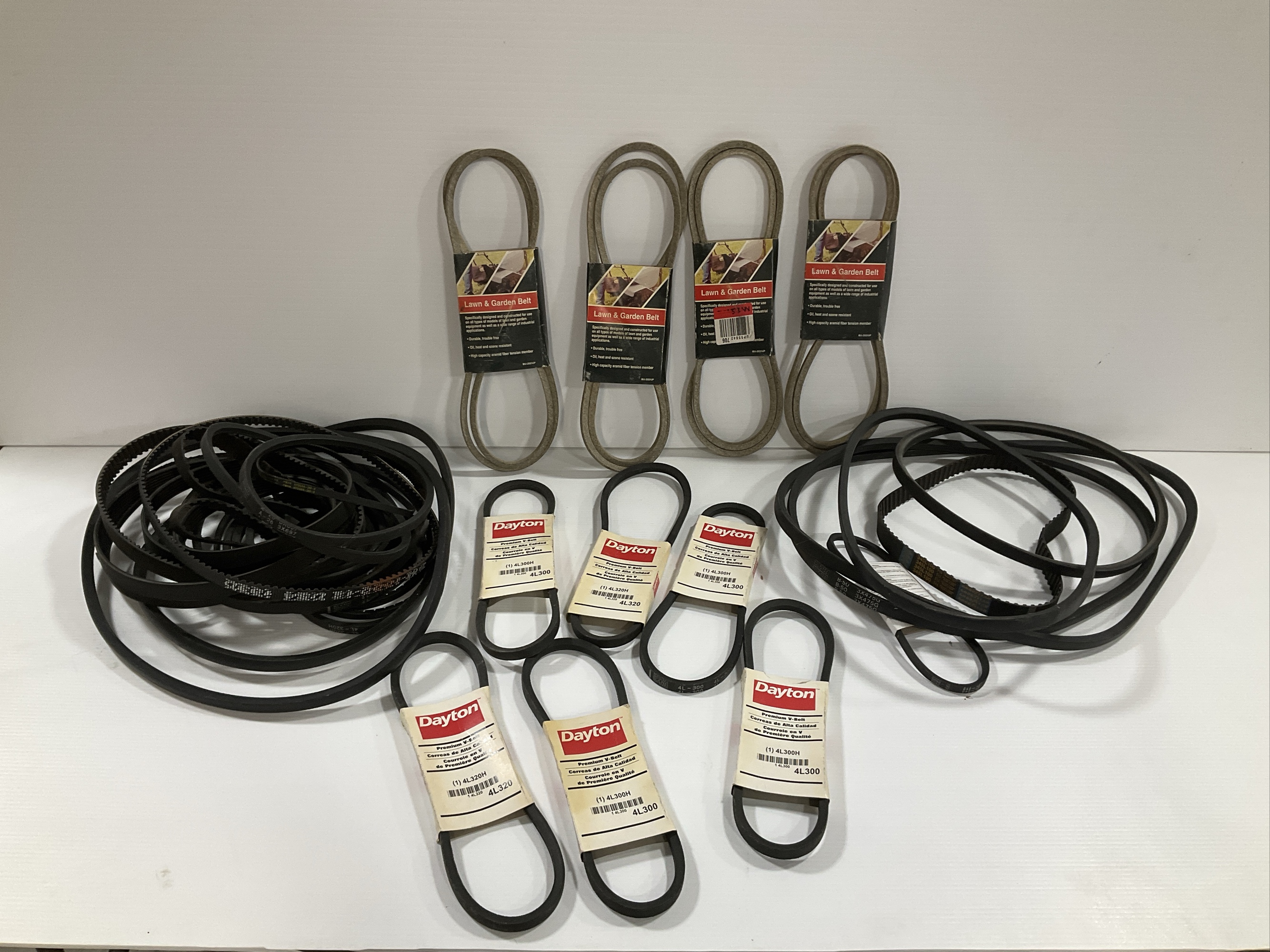 Assorted Belts: Dayton, Goodyear, Gates, Lawn & Garden Belts