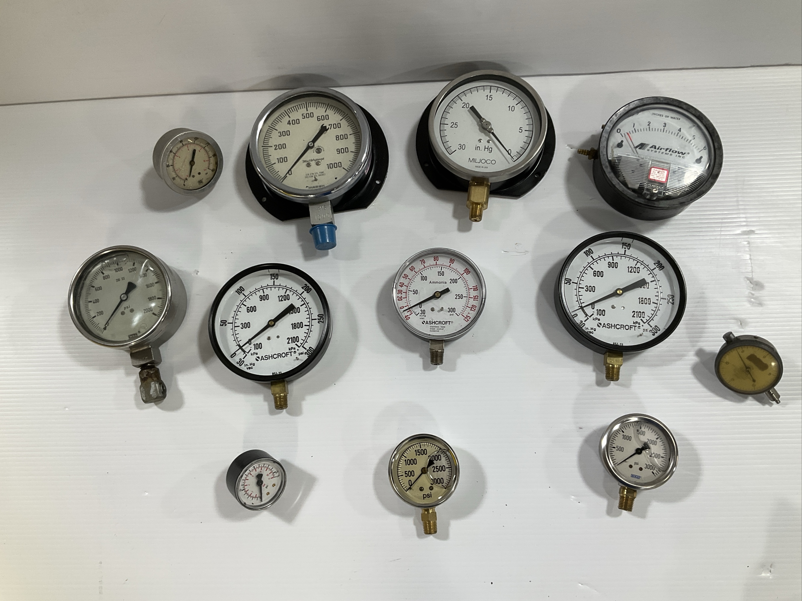 Mixed Lot of Pressure Gauges - Ashcroft, Marsh, Miljoco, Airflow Systems, and More