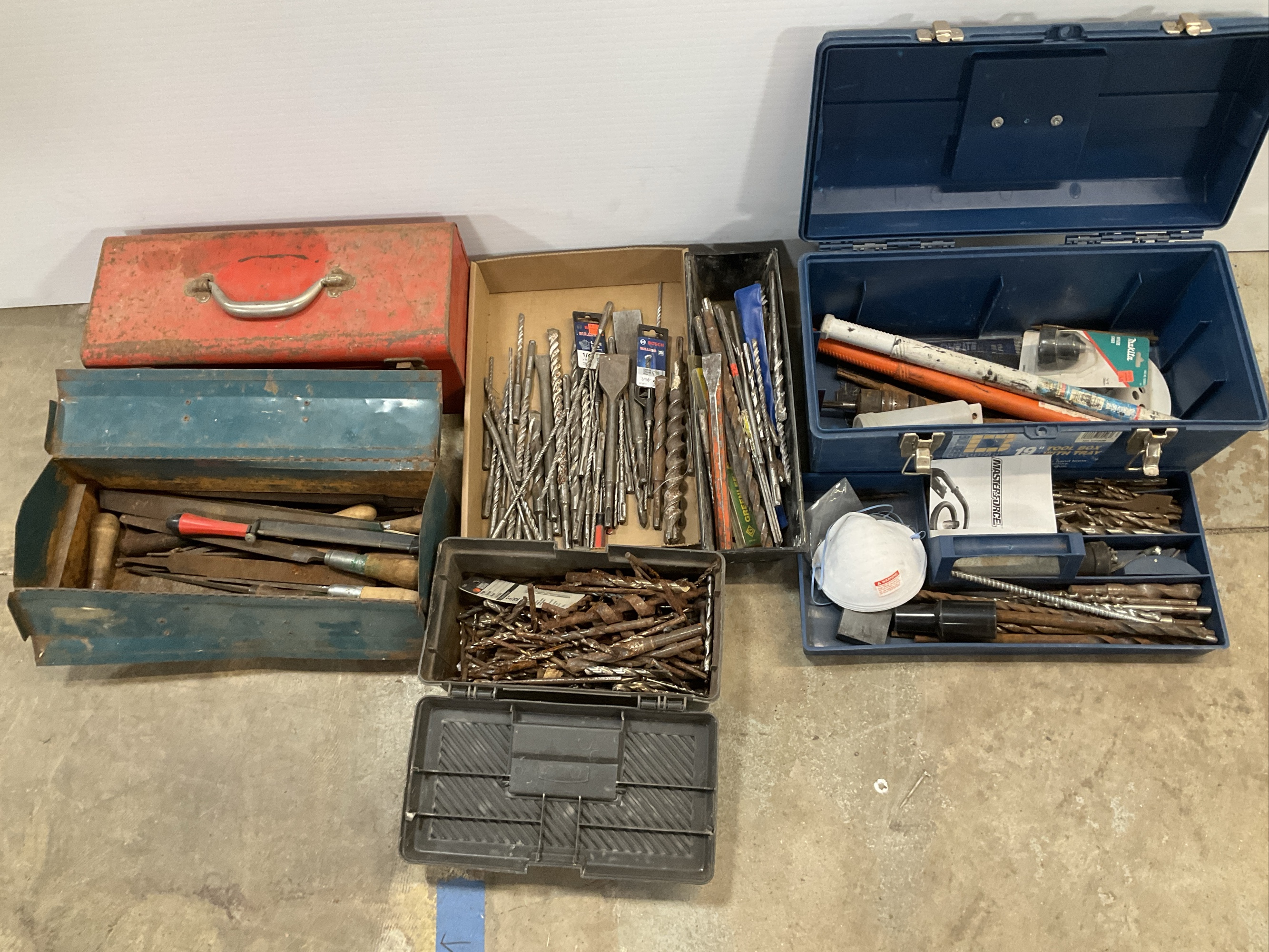 Tool Lot with Toolboxes, Files, and Drill Bits