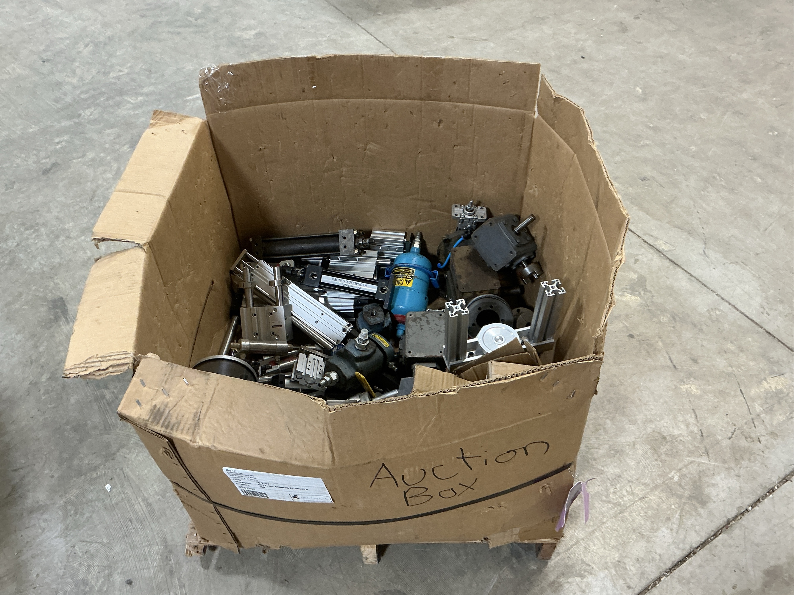 A large selection of hydraulic and pneumatic components, including cylinders, valves, and reservoirs. Various models and manufacturers are represented. Being sold as one lot.