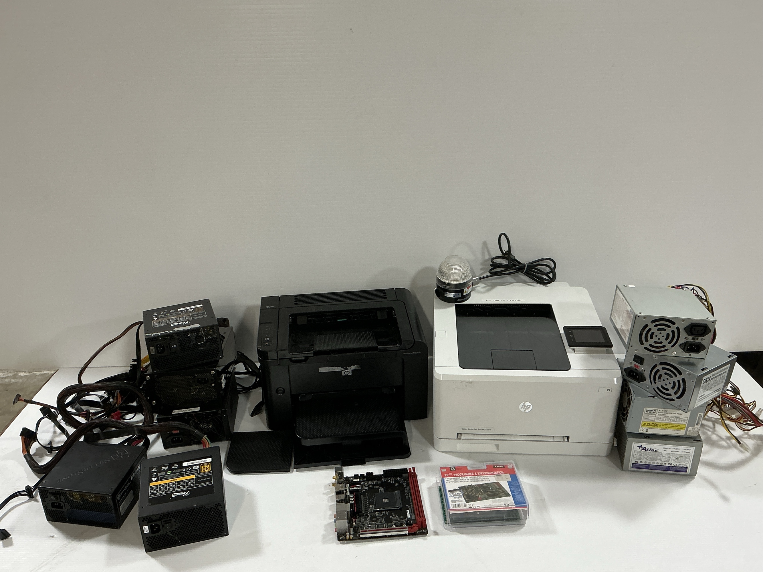 Mixed Electronics Lot: HP LaserJet Printers, Power Supplies, Motherboard, & More