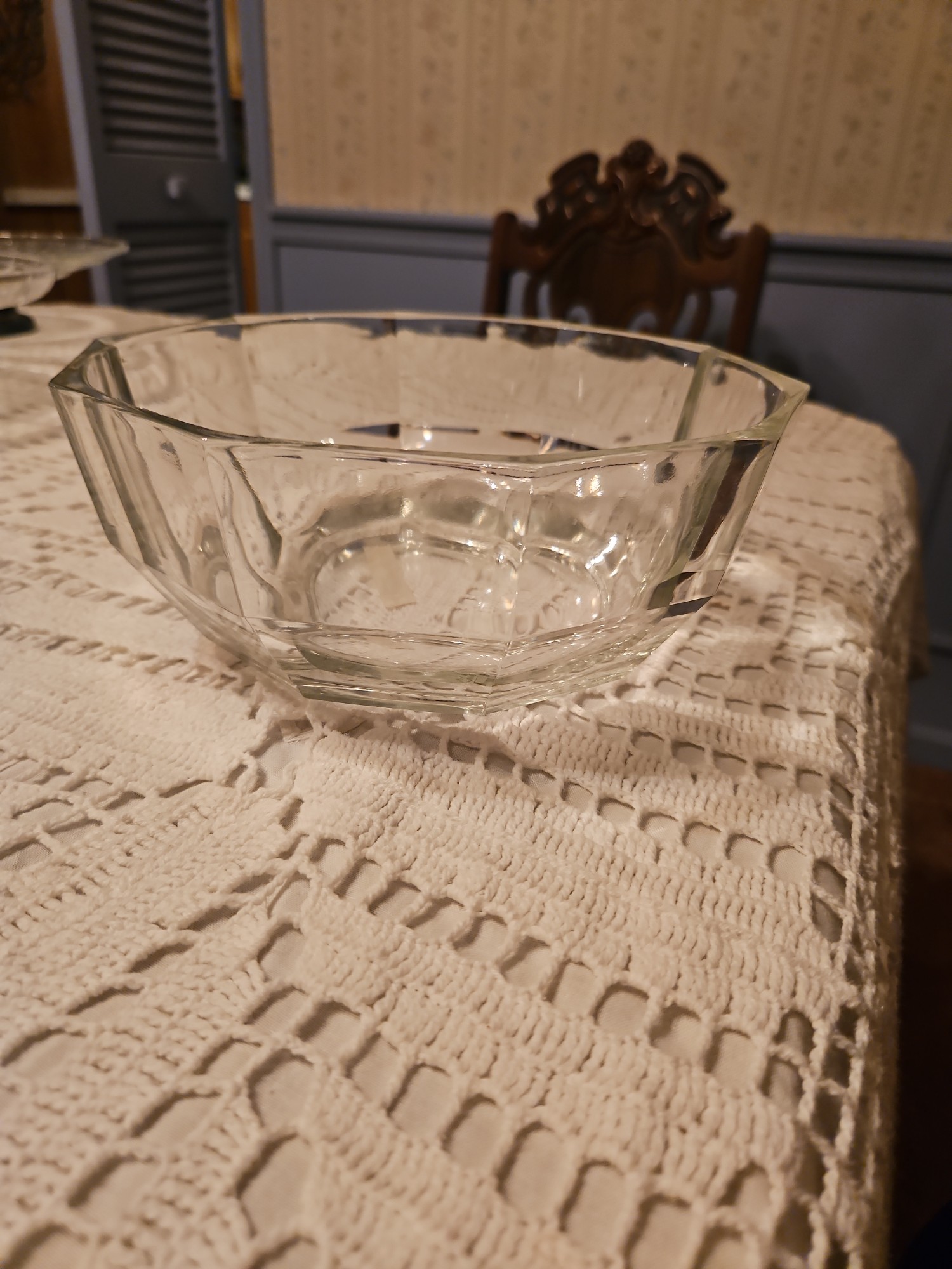 Vintage MCM Crystal Clear Paneled Glass Serving Salad Bowl Signed Italy 9”