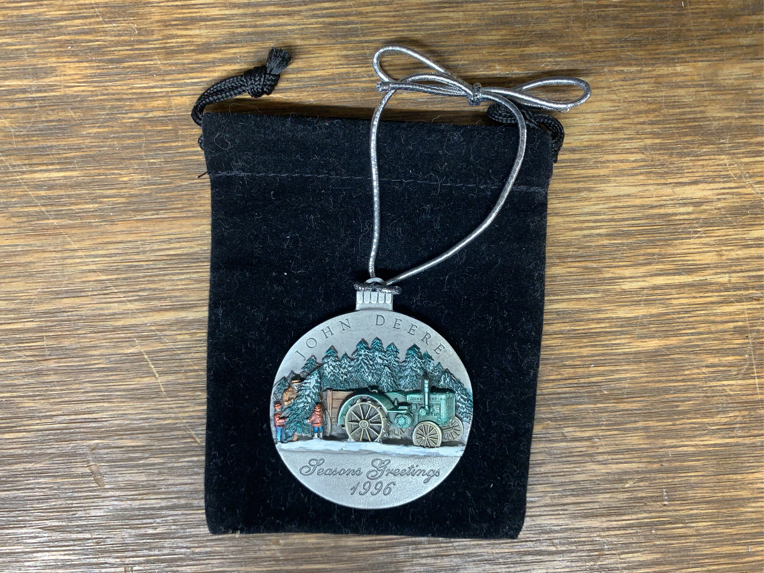 1996 John Deere pewter Christmas ornament with bag. Good condition.
