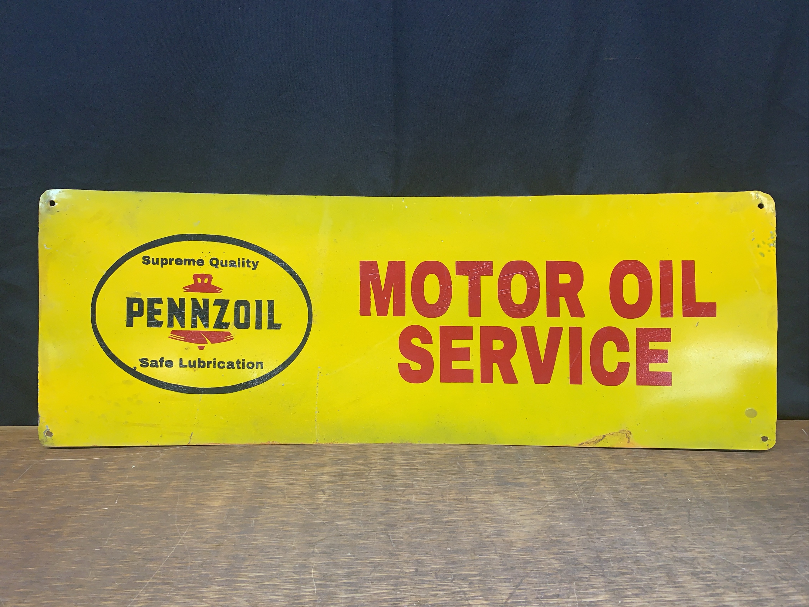 Pennzoil Motor Oil Service SST sign. 32" x 11". Shows wear.