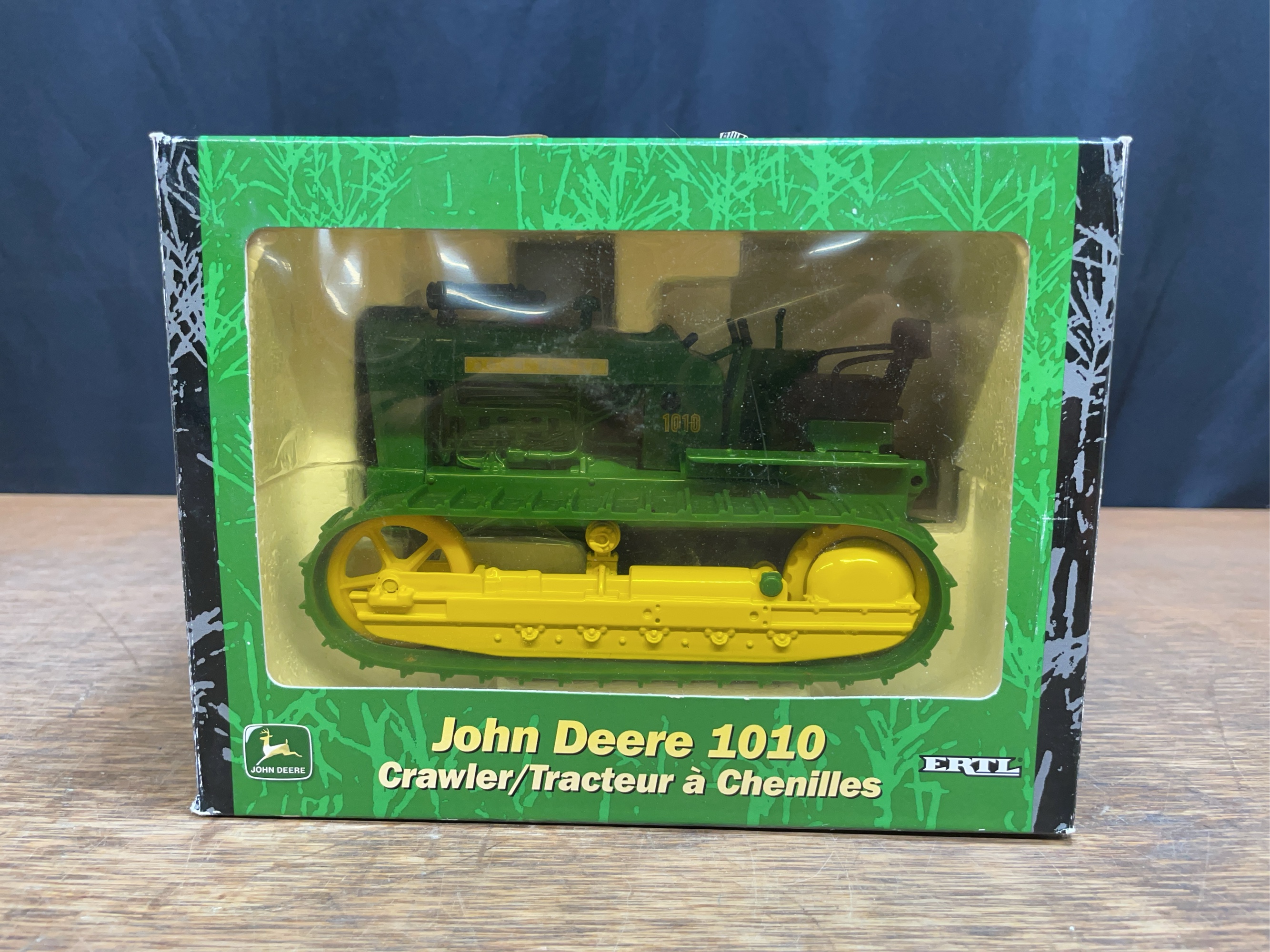 1/16 scale John Deere 1010 crawler NIB made by Ertl. Box shows light wear, fading, and has stickers on top. Stock # 15191.