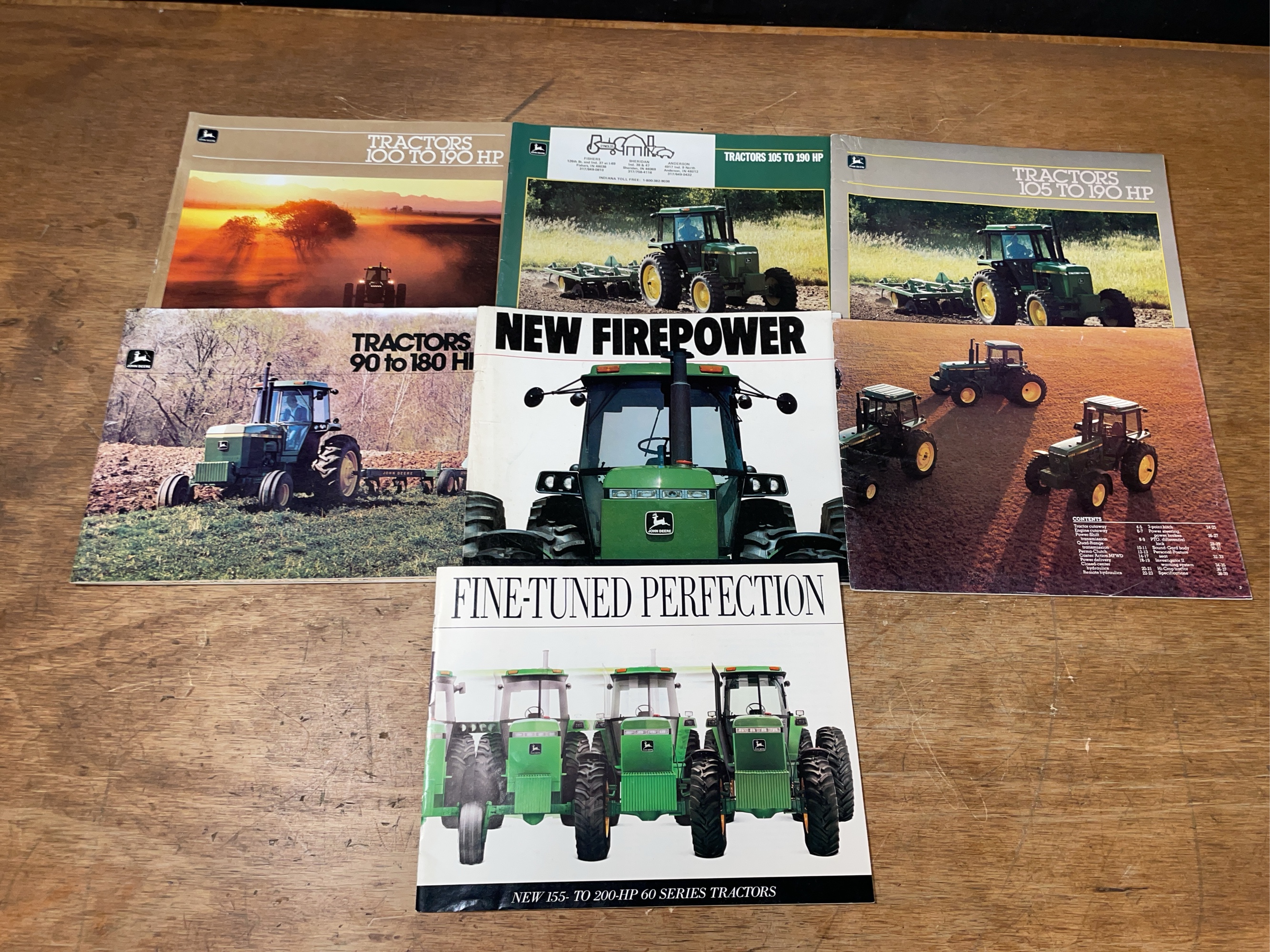 Lot of 7 John Deere tractor sales literature. Varying condition.