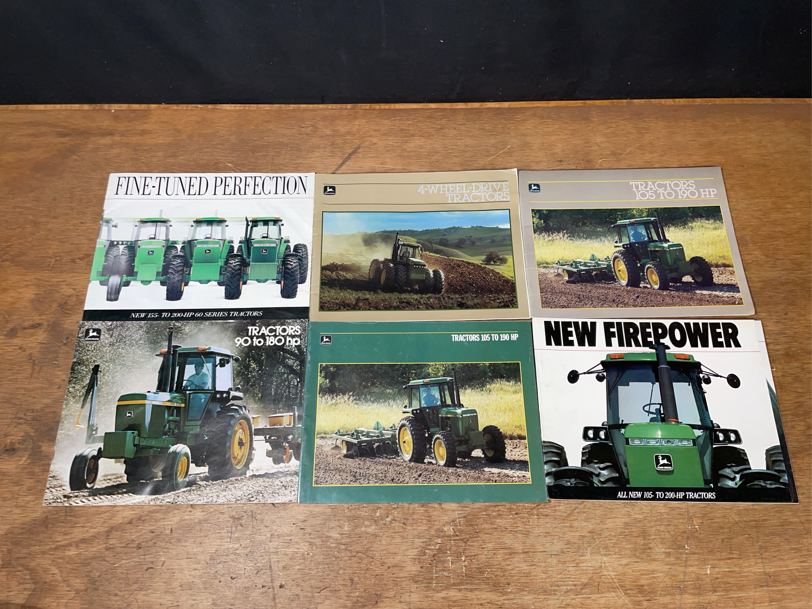Lot of 6 John Deere tractor sales literature. Varying condition.
