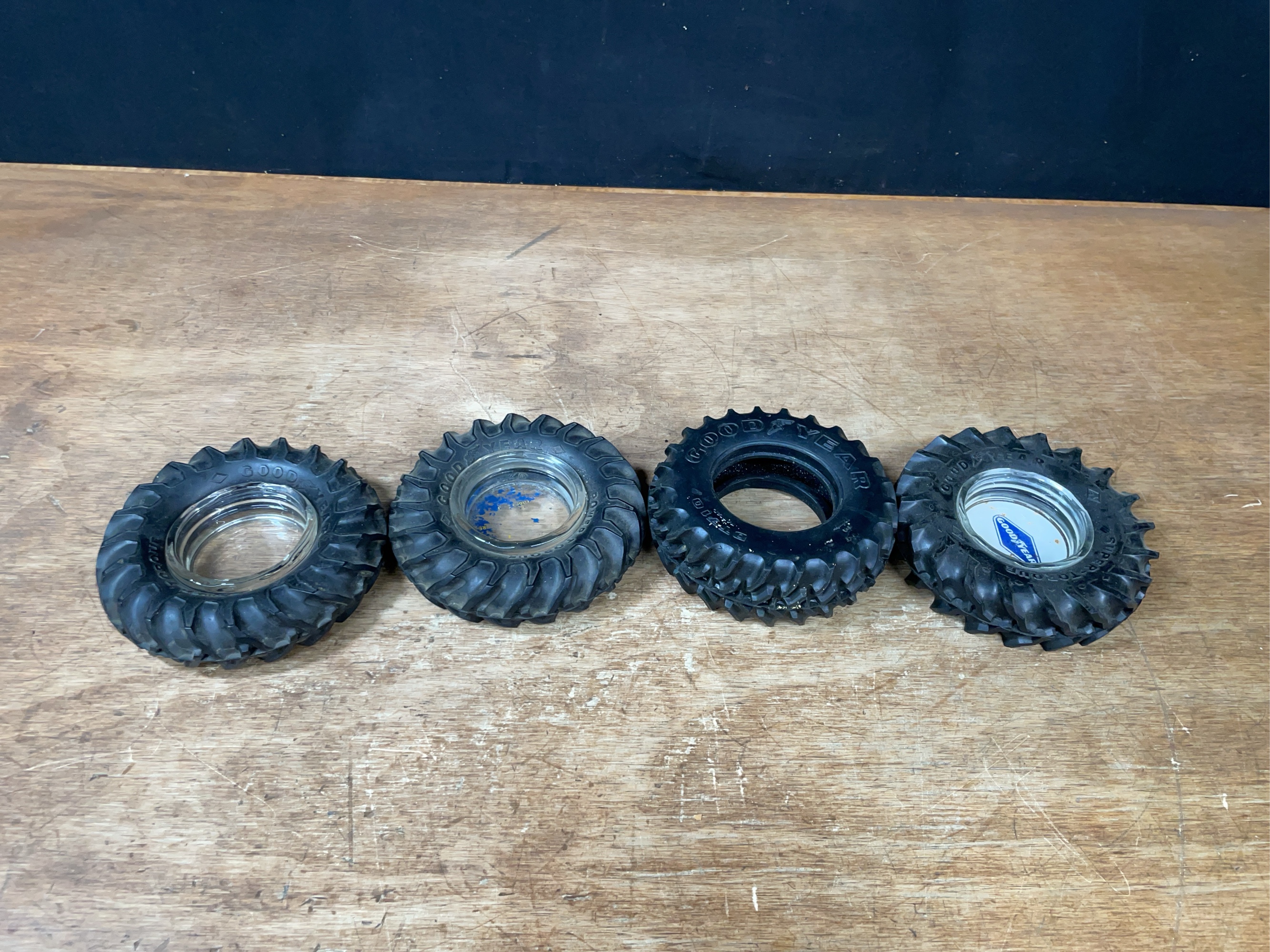 Lot of 4 Good Year tractor tire ashtrays. Varying condition.