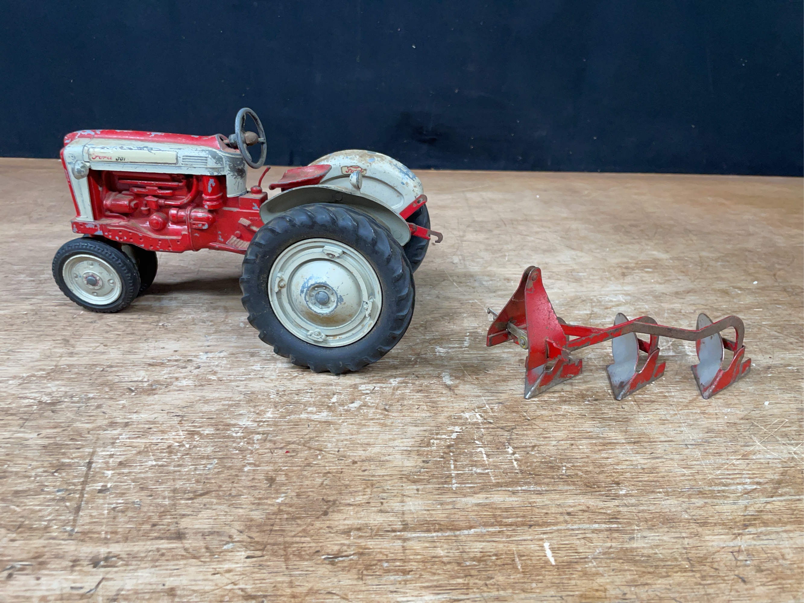 1/12 scale Ford 961 tractor made by Hubley. Shows wear and paint loss.