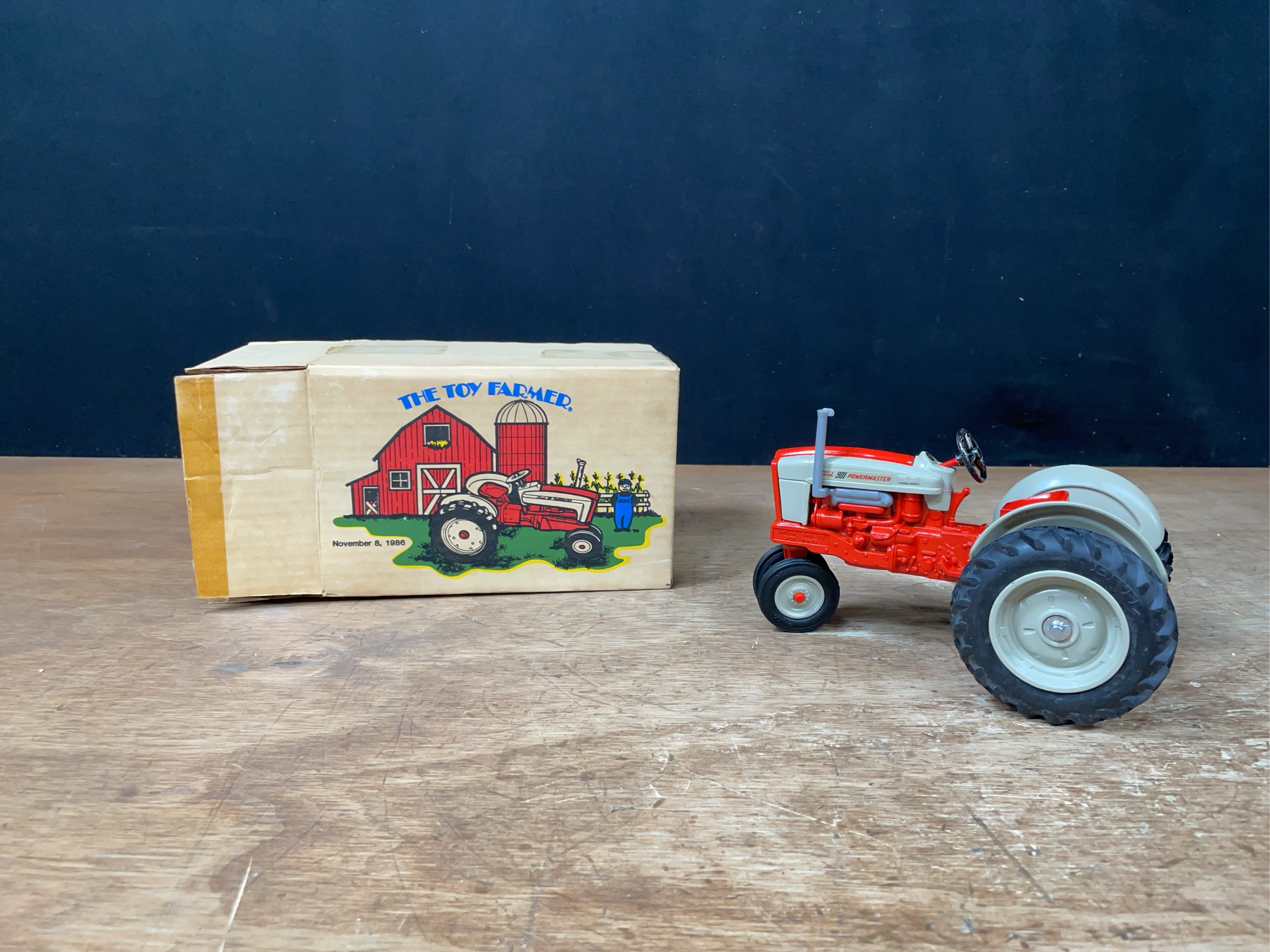 1/16 scale Ford 901 tractor 1986 National Farm Toy Show NIB made by Ertl. Box shows wear and staining. Stock # 424.