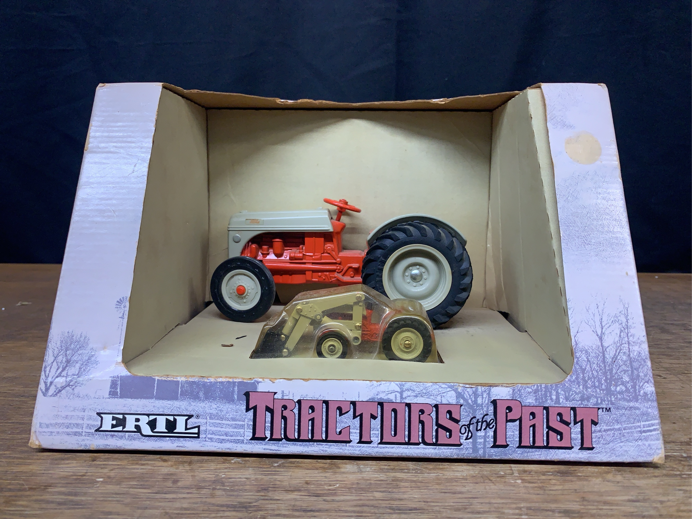 1/16 scale Ford 8N tractor with 1/43 scale tractor Tractors of the Past set NIB made by Ertl. Box shows wear. Stock # 867.