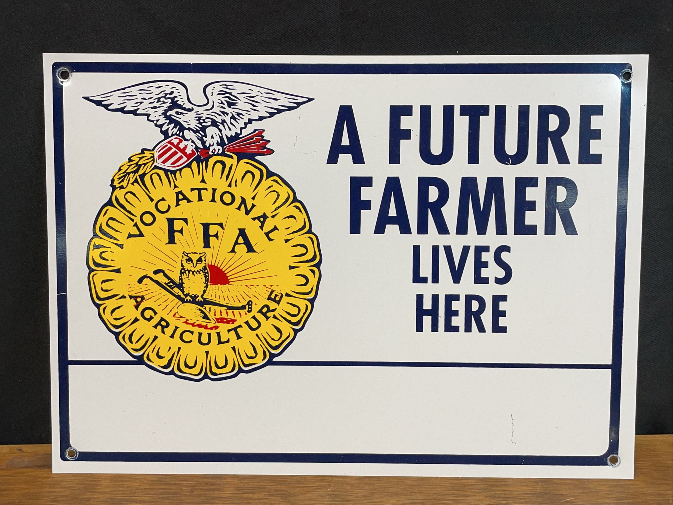 FFA A Future Farmer Lives Here SST sign. 14" x 10". Good condition.
