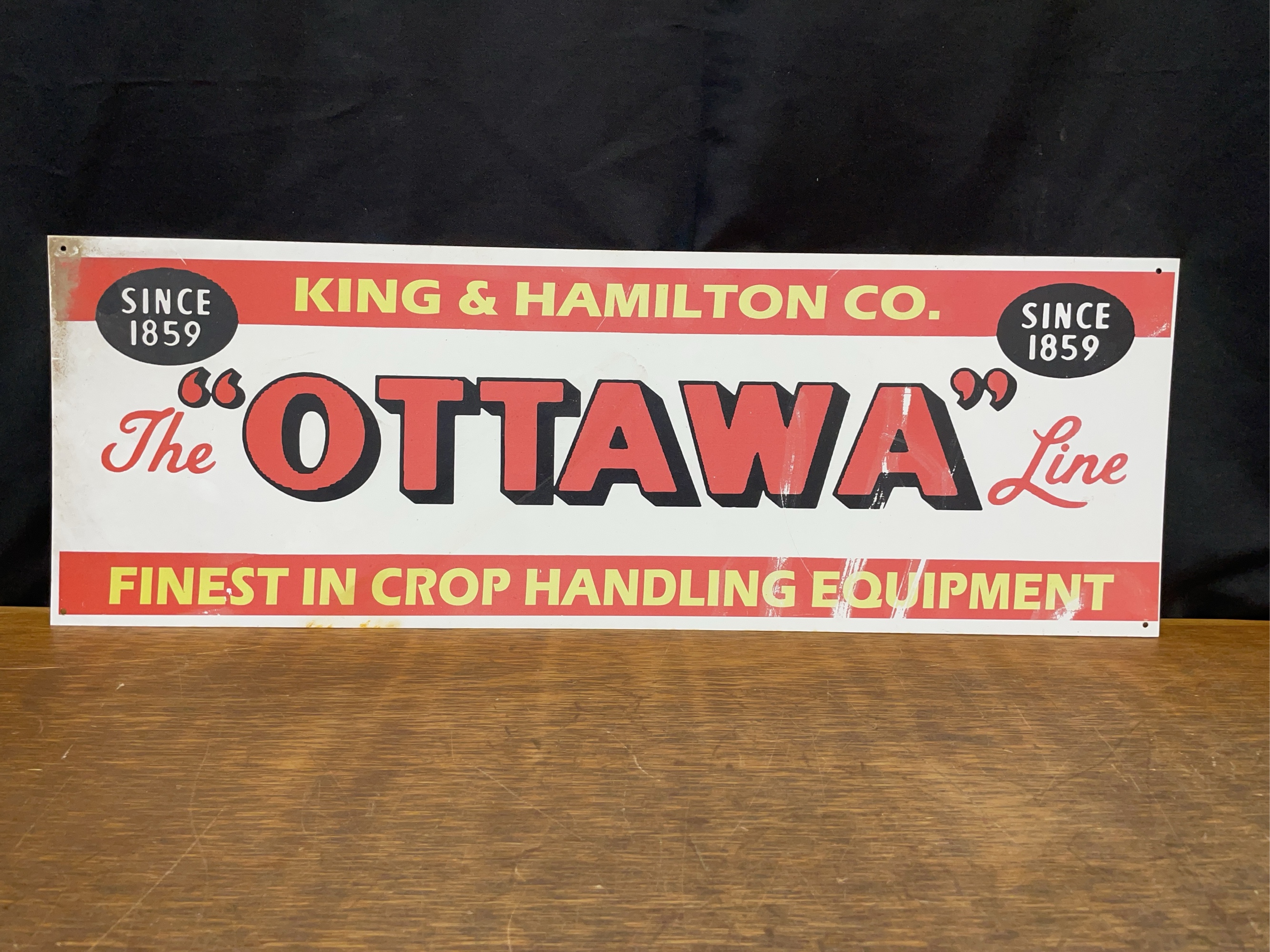 King & Hamilton Co. Ottawa Line SST sign. 24 1/4" x 8 1/4". Shows wear and fading.