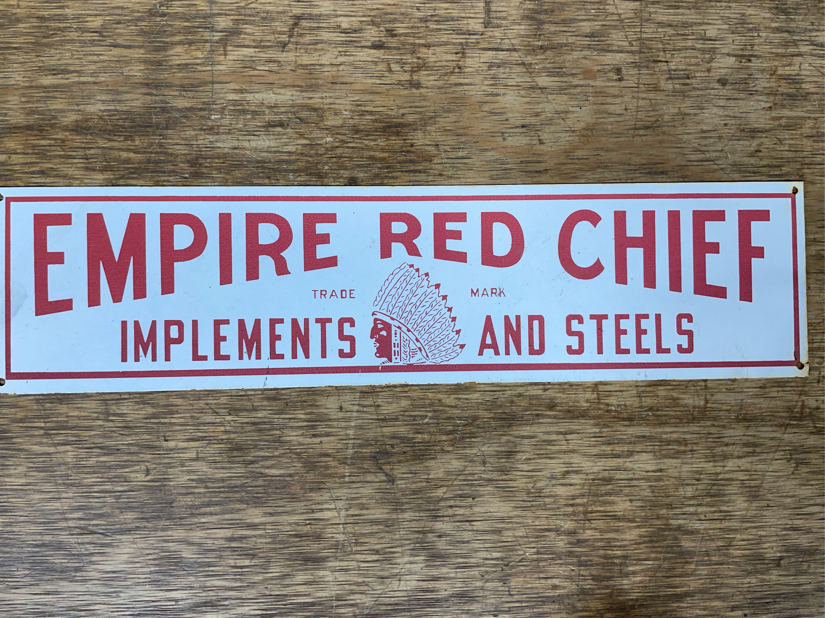 Empire Red Chief SST sign. 16 1/4" x 4". Show light wear and rust.