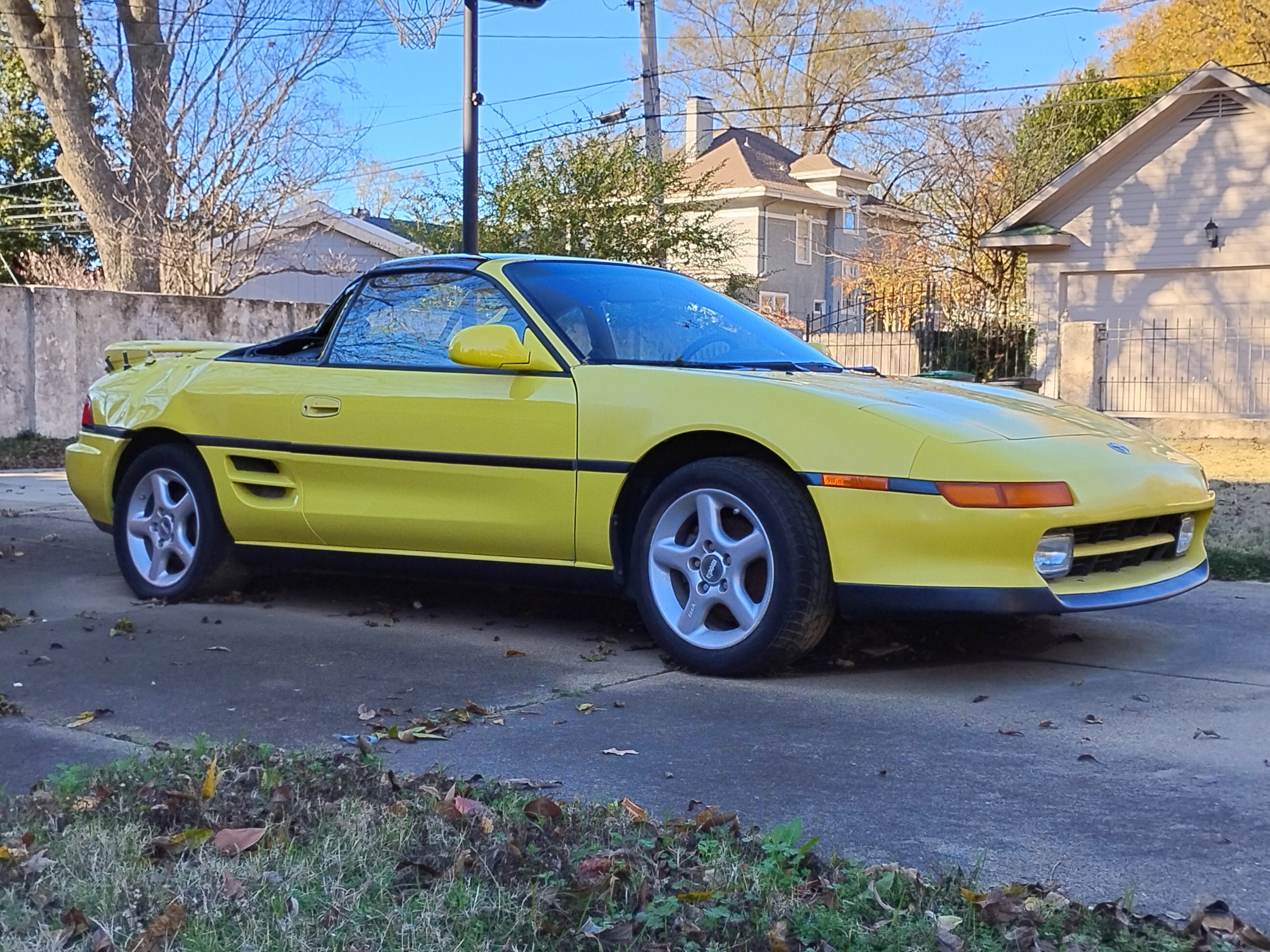 1992 TOYOTA MR2 Made in Japan Model SW20L-AJMZZA, does not run, a tree fell on it. The doors open and close ok, the trunk lid rubs and the engine compartment will not open, all other body parts in good shape. Has Moda wheels on it currently. Record book included. One owner. Original wheels, owners manual, and repair manuals in following lots. If you have any questions please call.