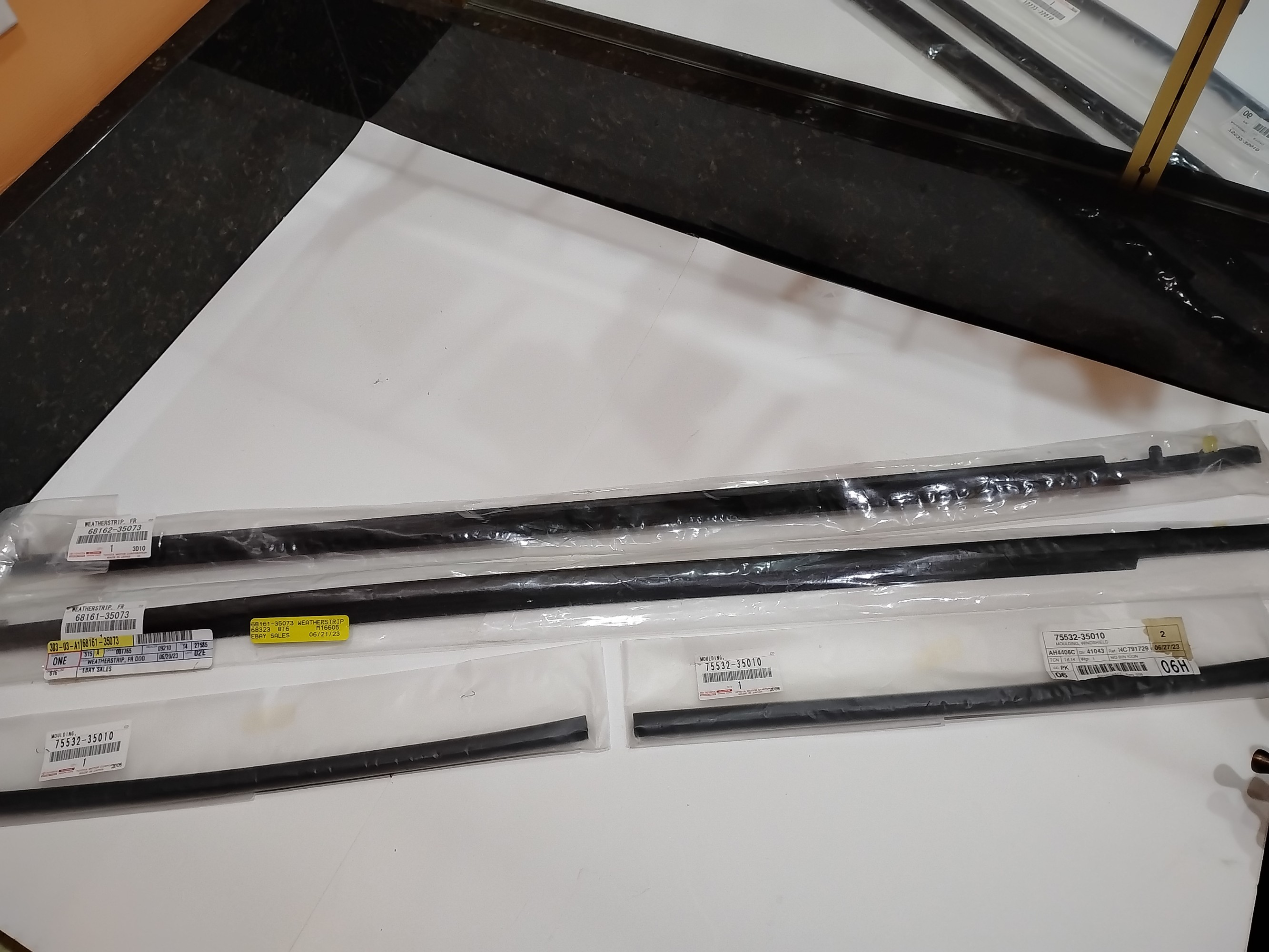 2 Windshield Moulding Toyota Part#75532-35010, 07-14 FJ Cruiser, 2 Front Door Window Weatherstrip Toyota Part #68161-35073 & 68162-35073