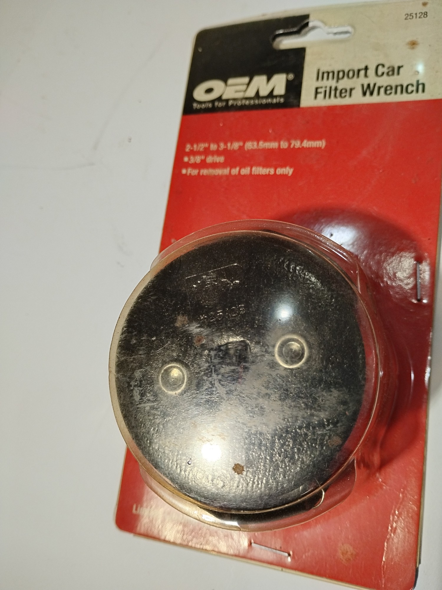 Import Car Filter Wrench #25128 OEM Tools for Professionals 2 1/2" to 3 1/8", 3/8" drive for removal of oil filters only. New in package