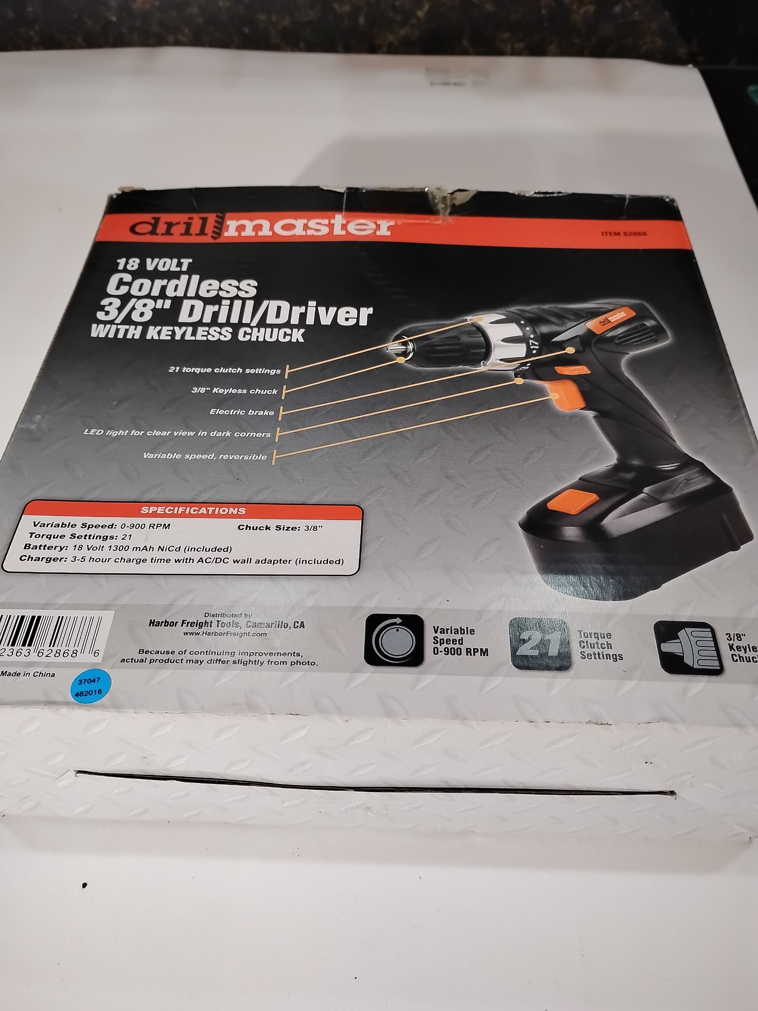 Cordless 3/8" Drill/Driver 18 volt with keyless chuck, Drill Master. New in box never used. Untested.