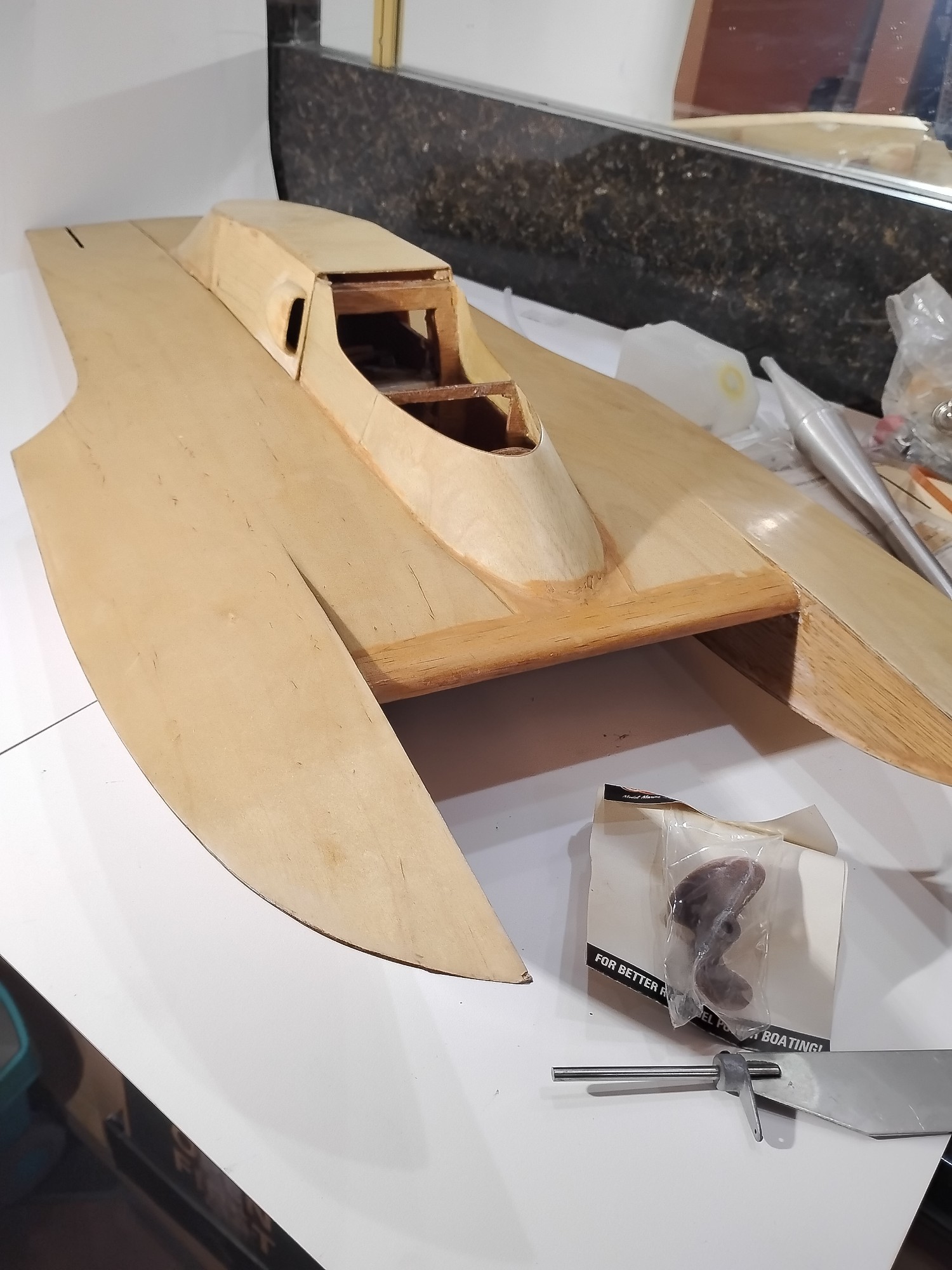 Atlas Van Line Hydroplane RC. Unfinished, plus box of parts.
