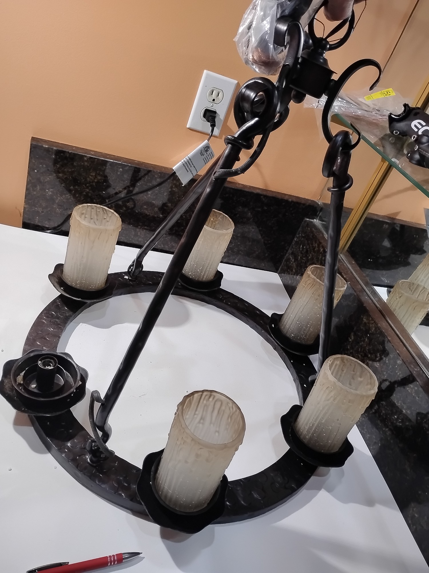 Chandelier, 21" across, bronze tone metal, missing one globe. New never installed