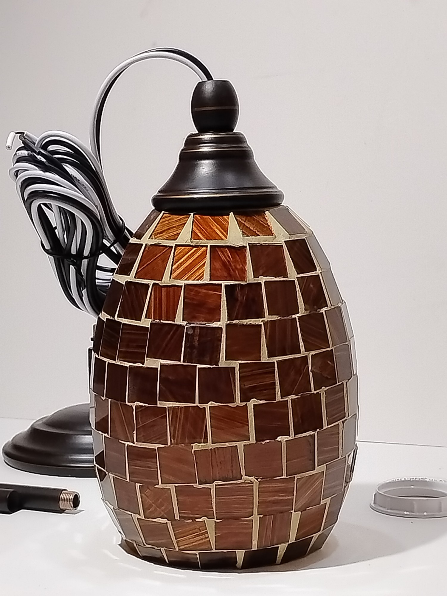 Pendant Light, Brown Mosaic Globe, Bronze Metal. Ceiling or wall mount. Wayfair, new in box, untested.