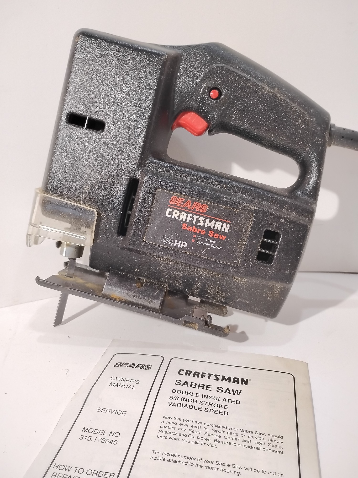 Craftsman Sabre Saw 1/4 HP, 5/8" stroke, Variable Speed, lightly used, untested. With Owners Manual