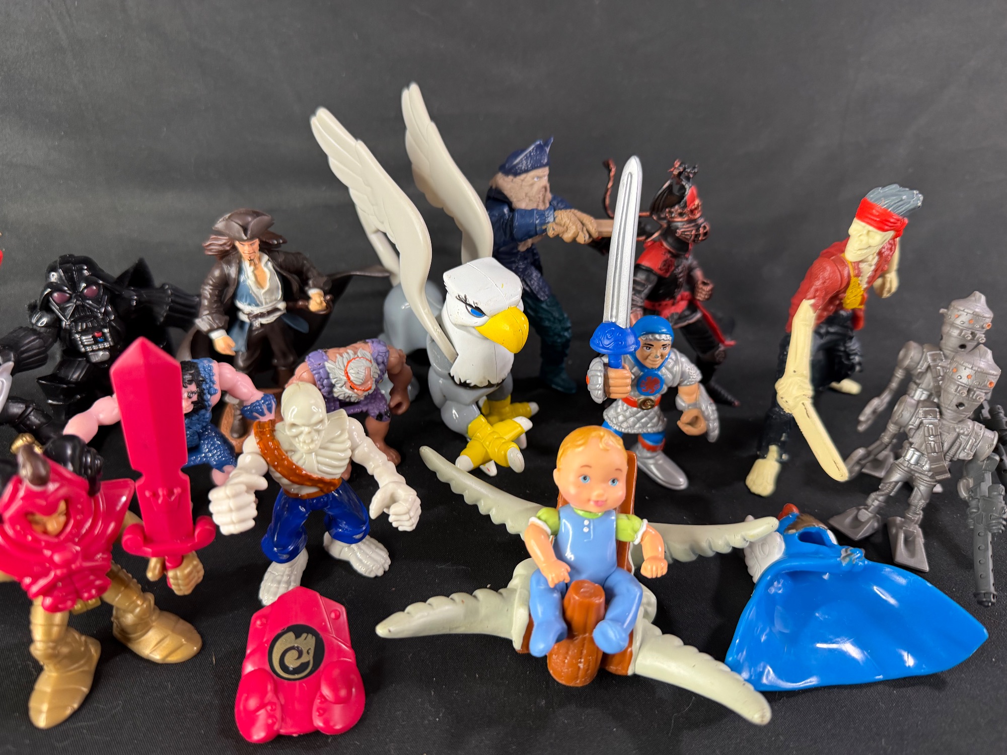 Calling all collectors and adventurers! Feast your eyes on this eclectic gathering of toy action figures, ready to embark on daring missions and epic battles in your home. This assortment includes a range of characters, from valiant knights and mystical creatures to fearsome villains and enigmatic beings. Whether you're a seasoned collector seeking a unique addition or a playful soul eager to ignite your imagination, this lot offers a diverse cast of characters to populate your playtime adventures. See photos for condition and details.