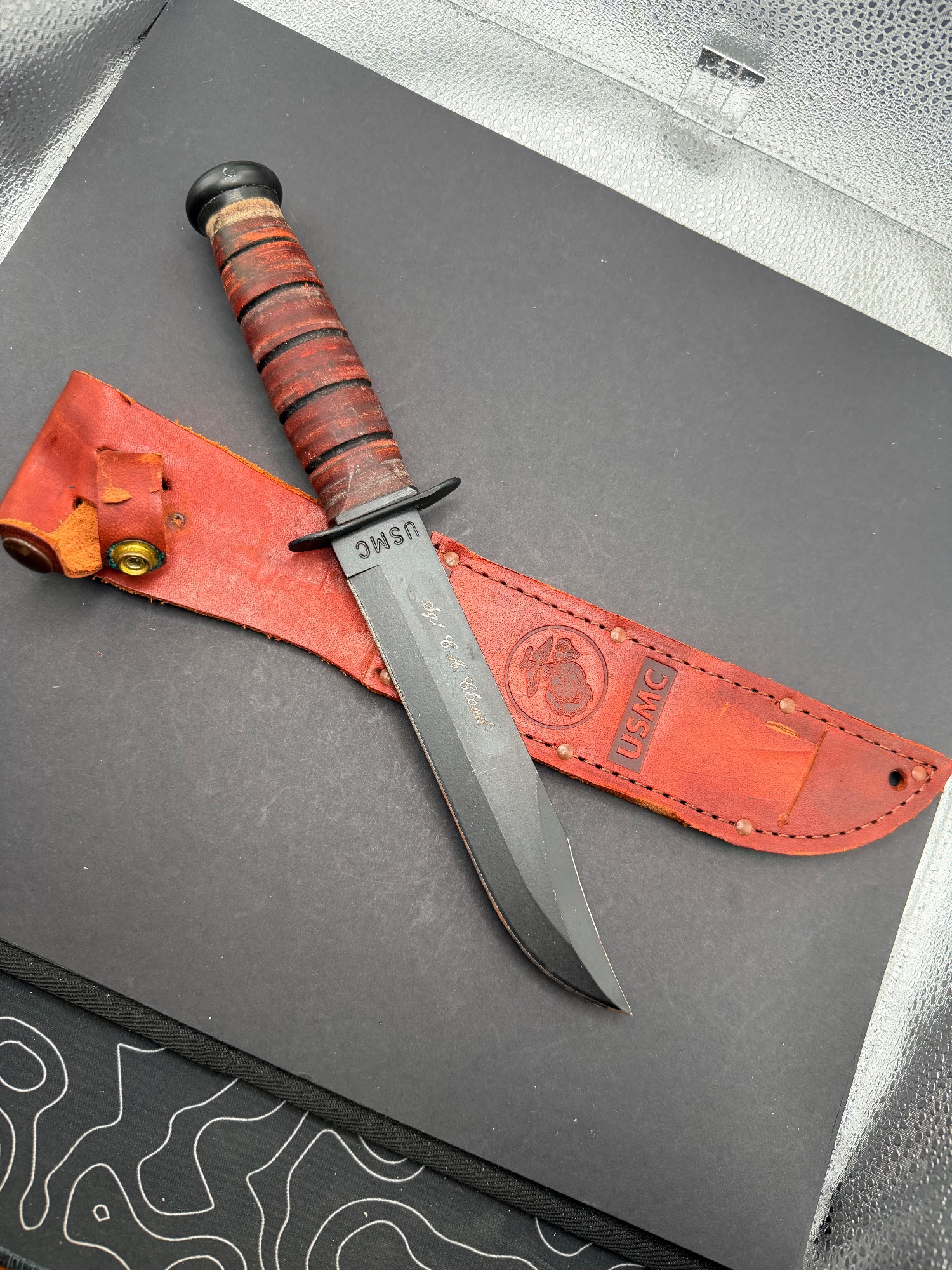 USMC KA-BAR Knife with Sheath - Sgt C. A. Cloud