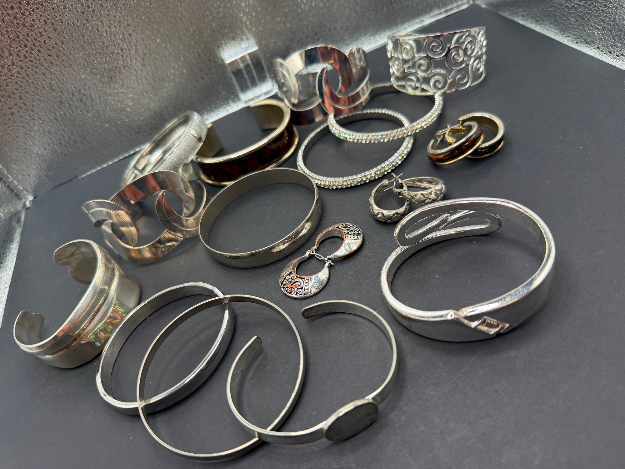 Calling all magpies! Feast your eyes on this eclectic collection of bracelets and earrings, ready to add some sparkle to your life. From sleek silver-toned bangles to quirky earrings, there's a little something for every style. The gang's all here, ready to accessorize and accessor-eyes! See photos for condition and details.