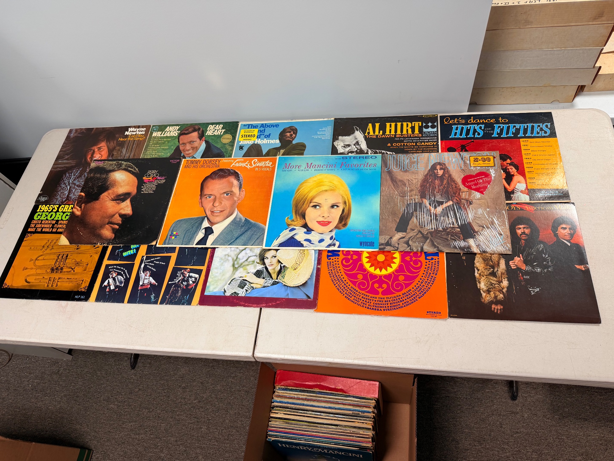 Dive into a diverse collection of vinyl records, ranging from classic crooners like Frank Sinatra and Dean Martin to instrumental legends and pop sensations. This assortment offers a glimpse into various musical eras and styles. See photos for condition and details. It's like a musical time capsule, but hopefully without any actual moths!