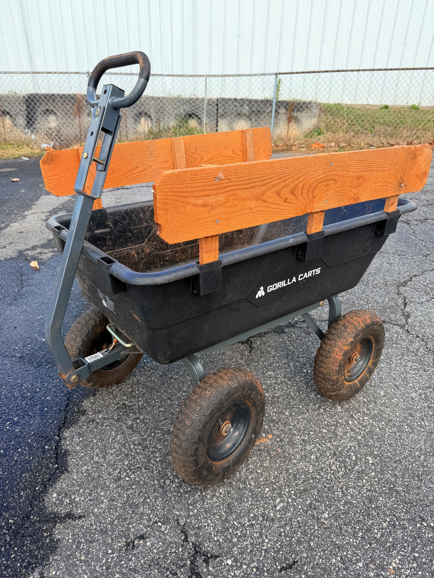 This Gorilla Carts utility wagon is here to lighten your load, whether you're hauling dirt in the garden, tools around the yard, or just about anything else you can think of! Don't let those piles of leaves win - this cart's ready to help you declare victory over yard work. See photos for condition and details.